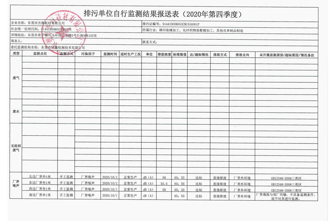 東莞市杰翔鞋材有限公司第四季度報(bào)送表
