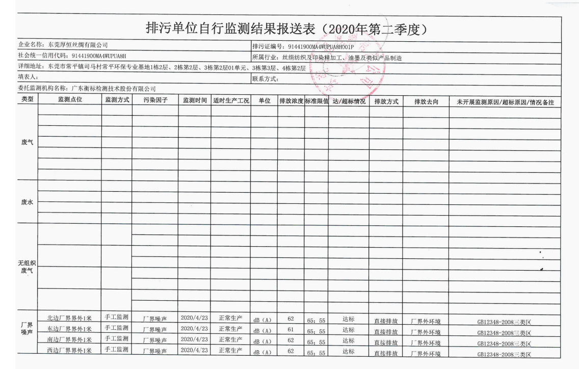 東莞厚恒絲綢有限公司第二季度報(bào)送表