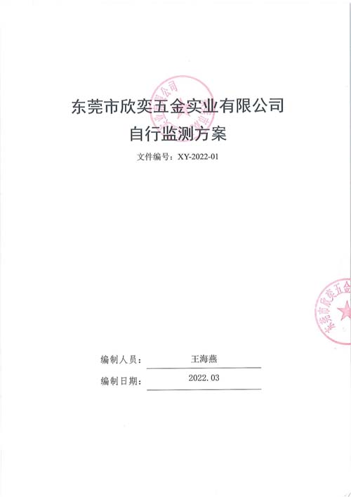 東莞市欣奕五金實業(yè)有限公司2022年自行監(jiān)測方案