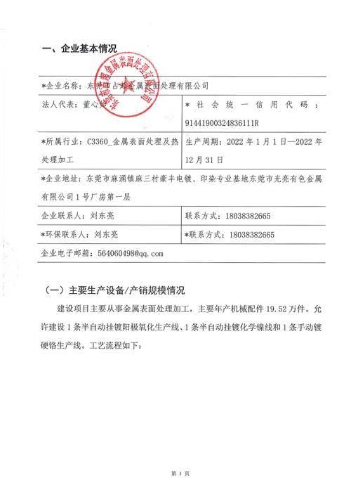 東莞市占超金屬表面處理有限公司2022年監測方案