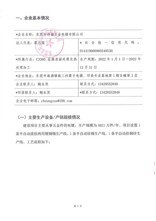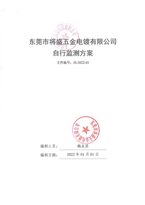 東莞市將盛五金電鍍有限公司2022年自行監(jiān)測方案