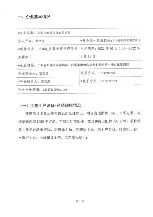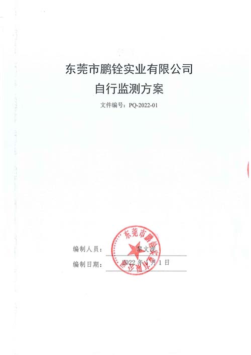 東莞市鵬銓實業有限公司2022年自行監測方案