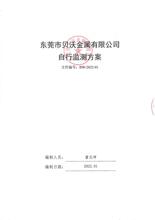 東莞市貝沃金屬有限公司2022年自行監測方案