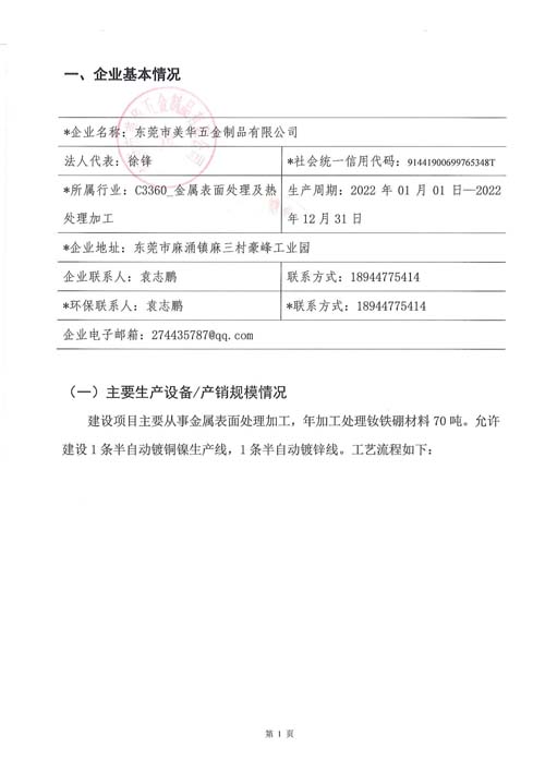 東莞市美華五金制品有限公司2022年監測方案