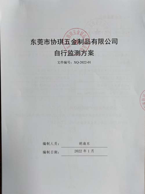 東莞市協(xié)琪五金制品有限公司2022年監(jiān)測方案