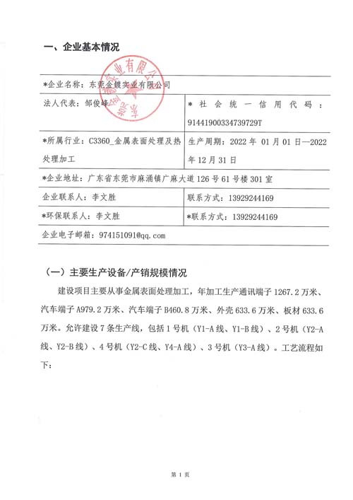 東莞市捷耀金屬表面處理有限公司2022年監測方案