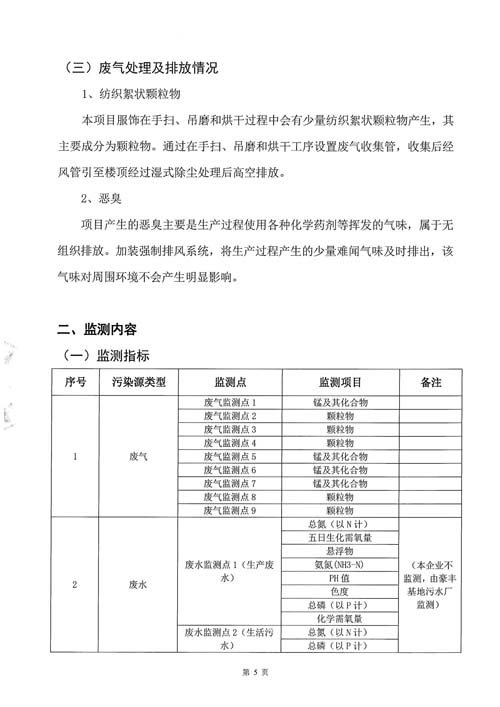東莞市晉輝紡織服裝洗漂有限公司2022年監測方案