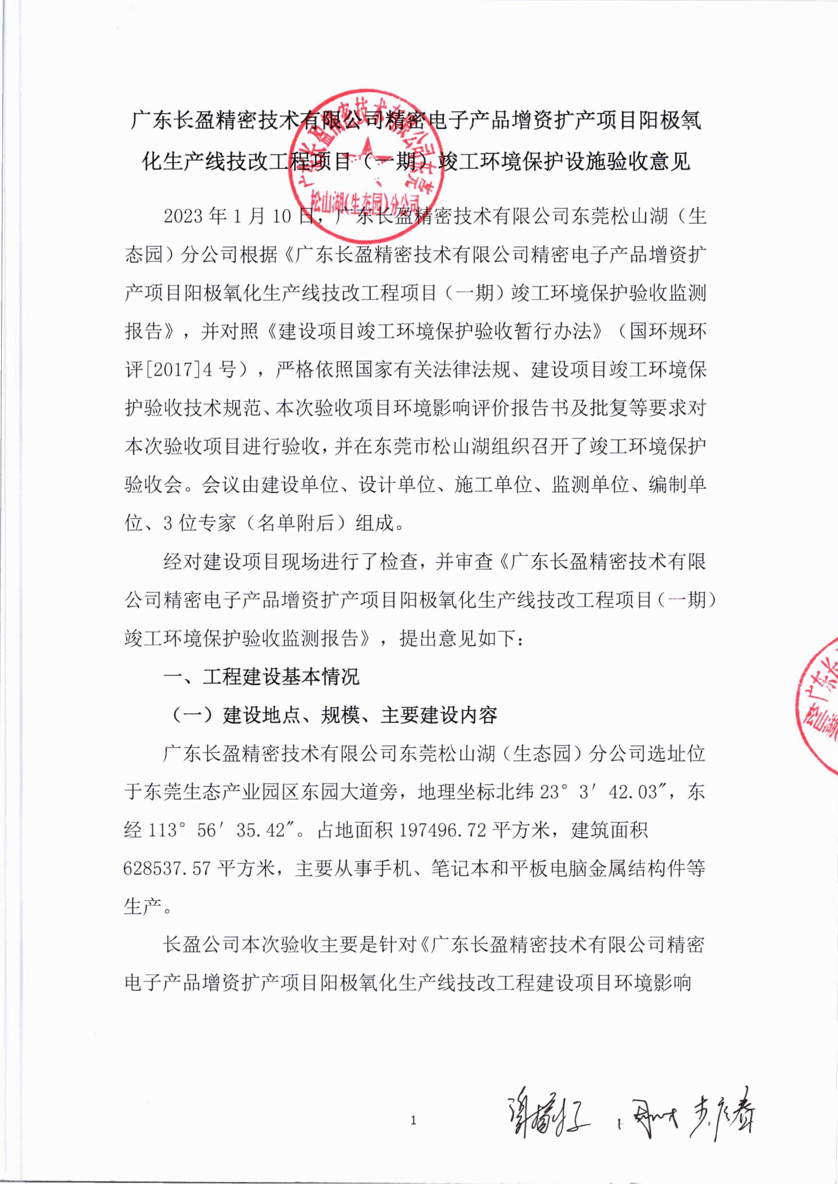 廣東長(zhǎng)盈精密技術(shù)有限公司擴(kuò)產(chǎn)驗(yàn)收意見