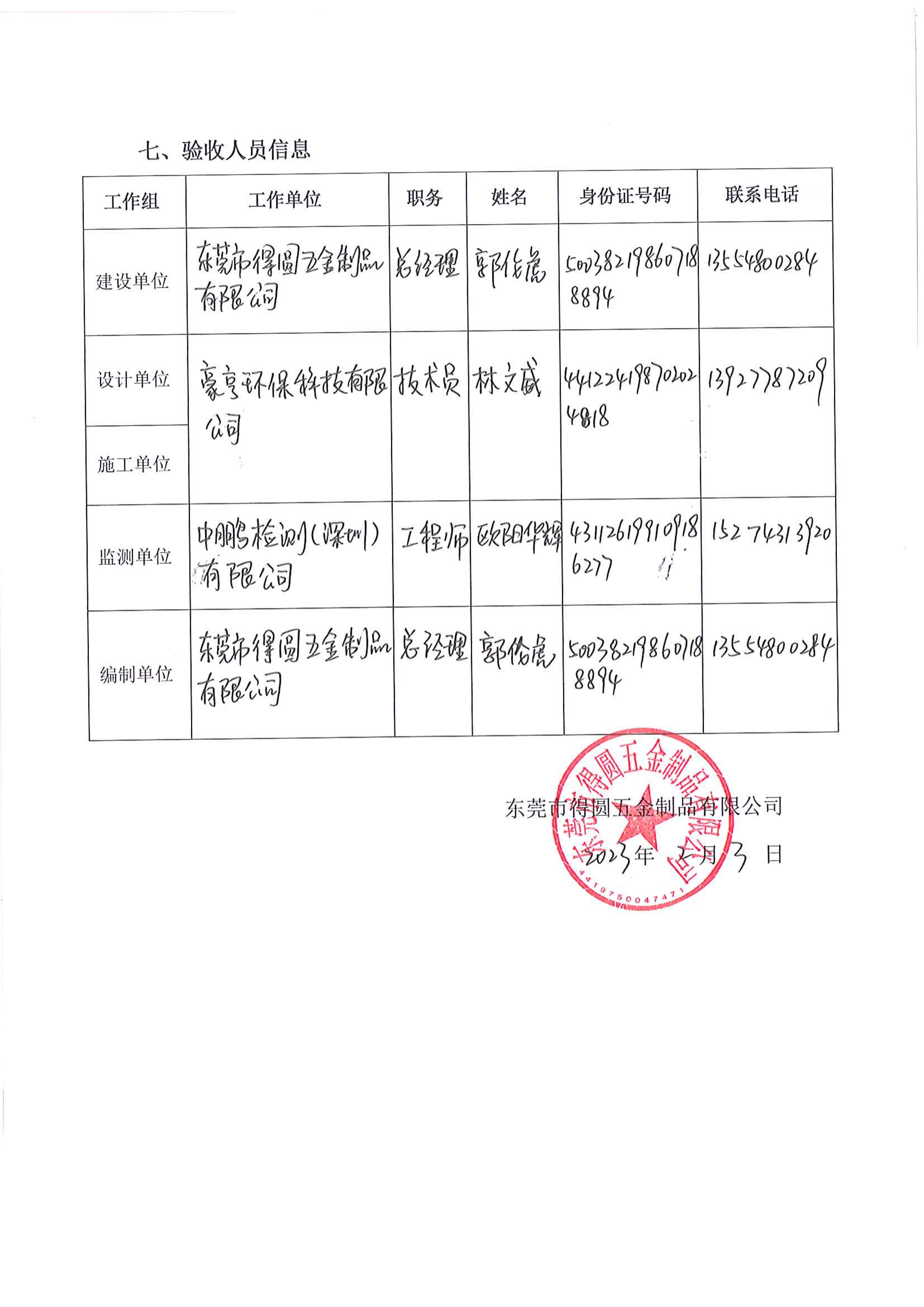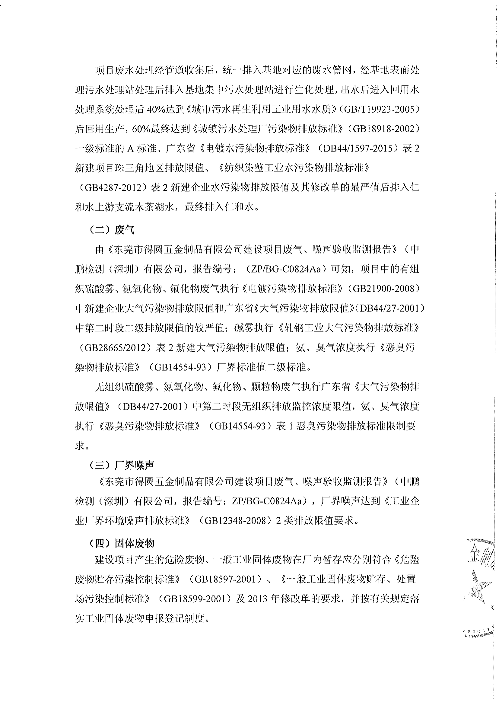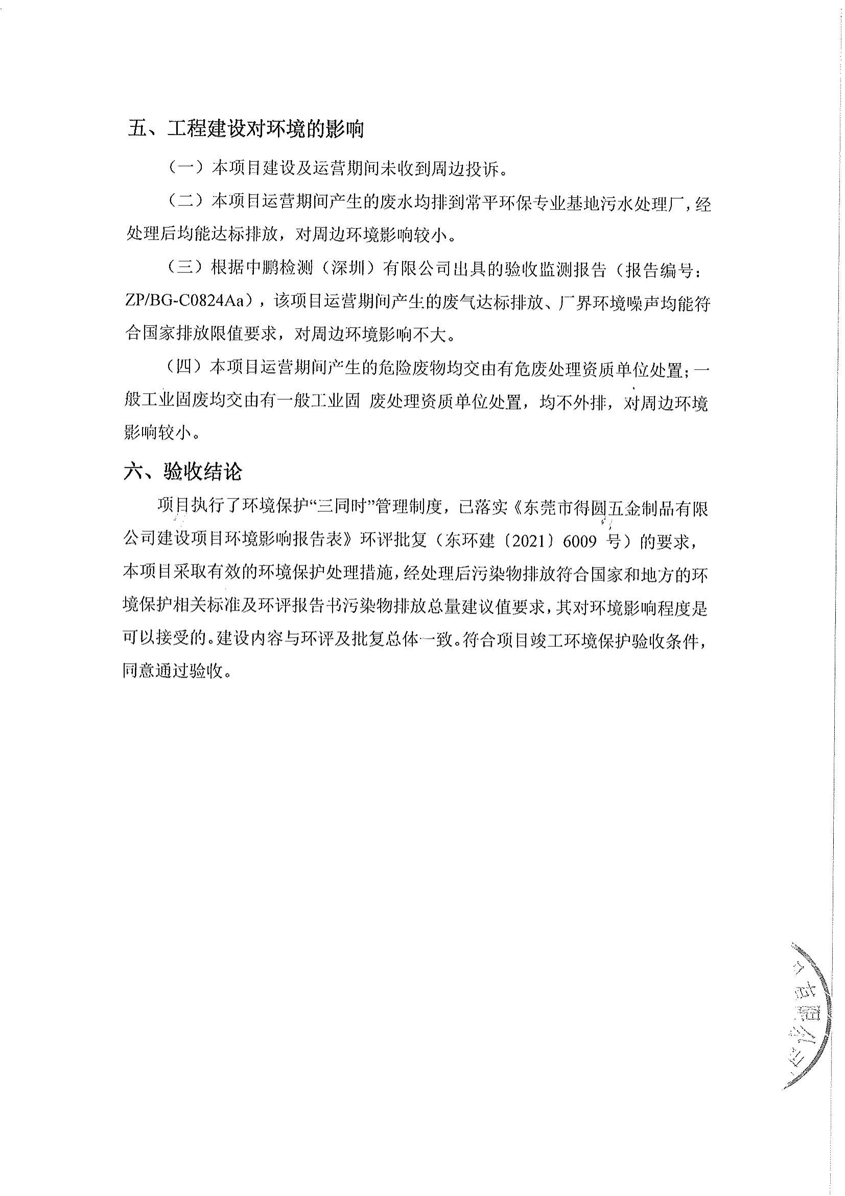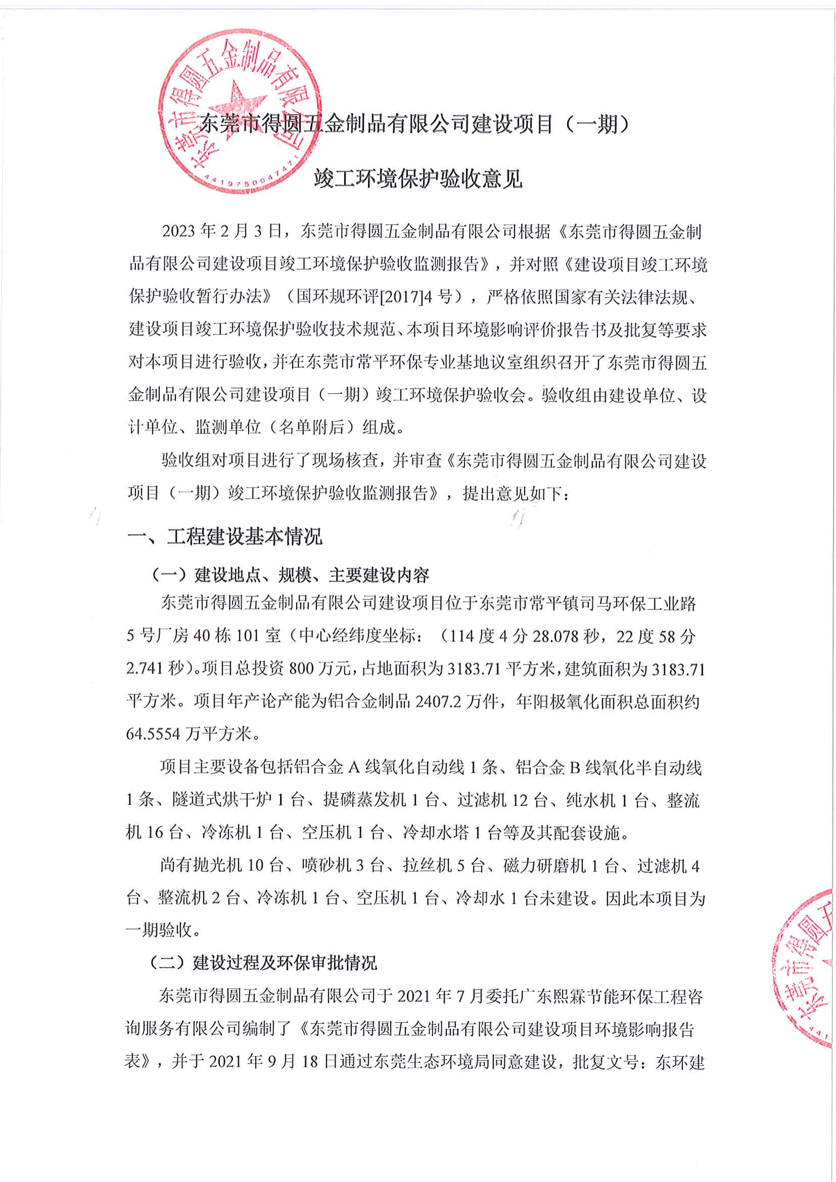 關(guān)于東莞市得圓五金制品有限公司驗(yàn)收意見
