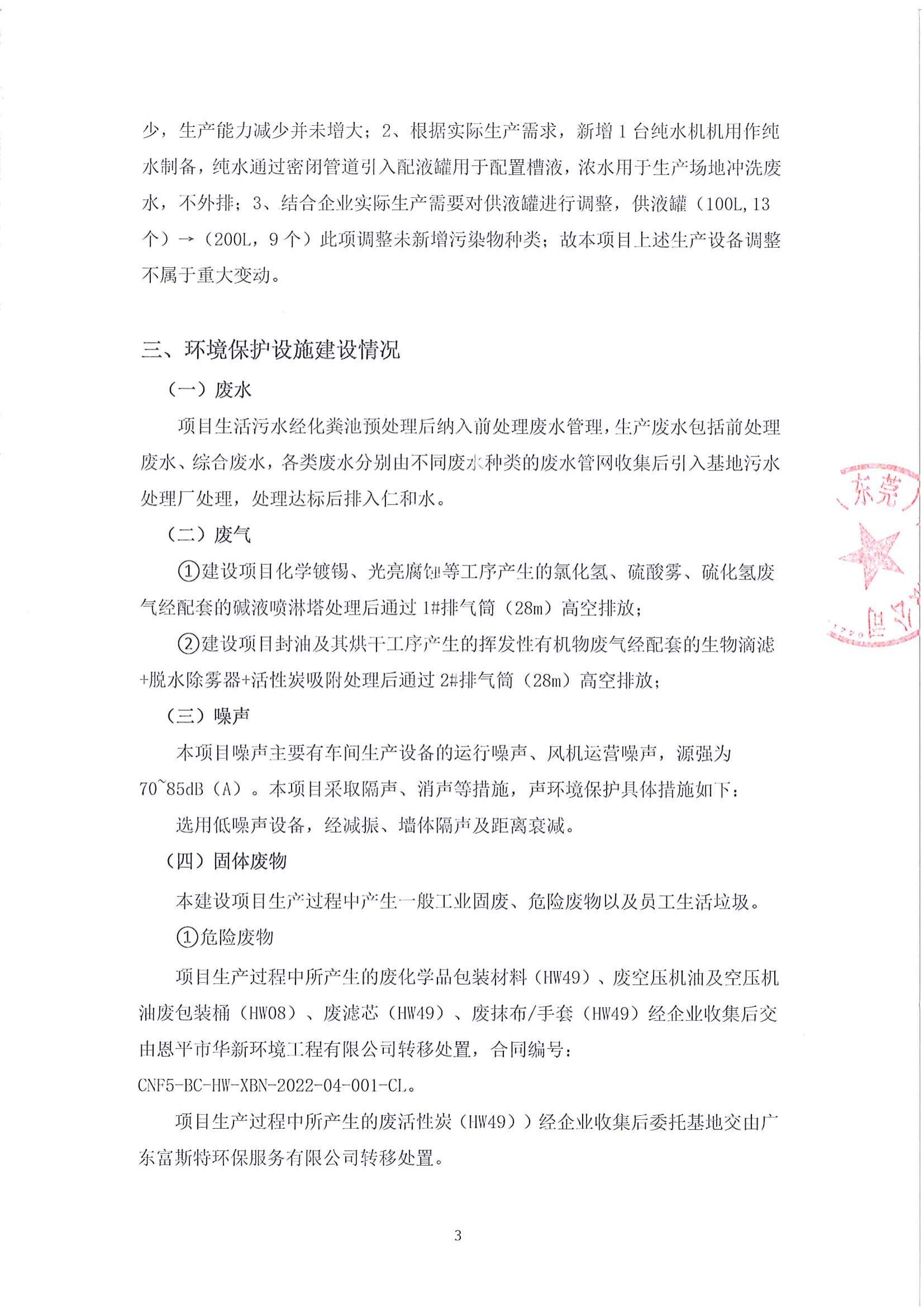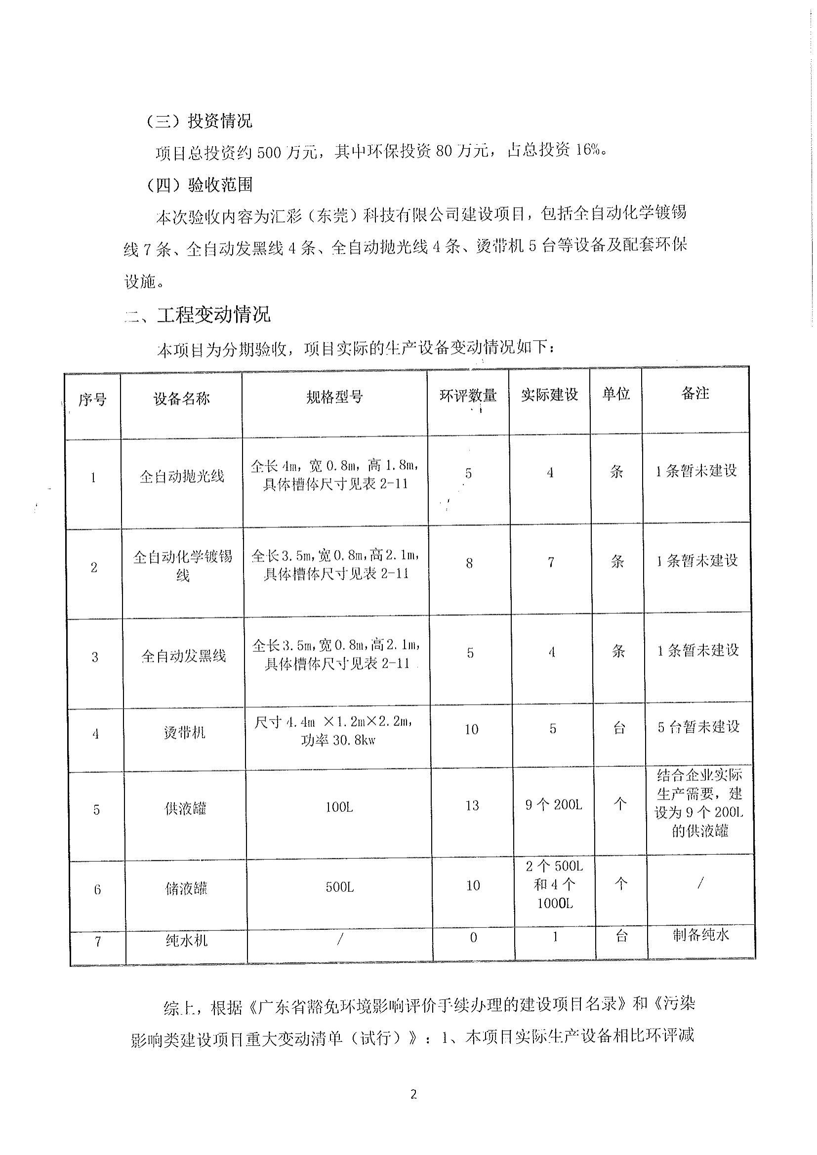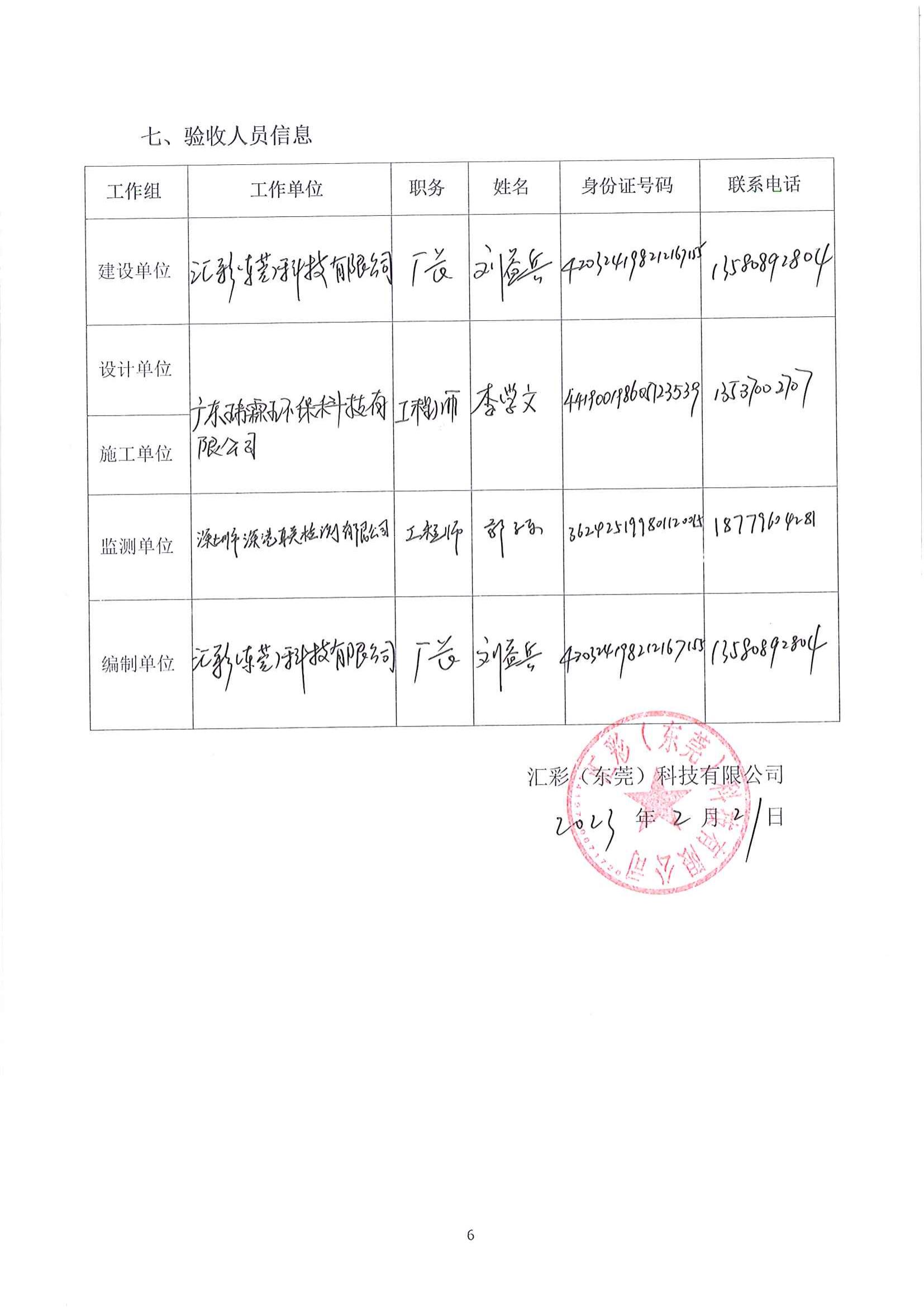 匯彩(東莞)科技有限公司建設項目 (一期) 竣工環境保護驗收意見