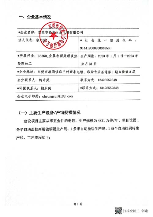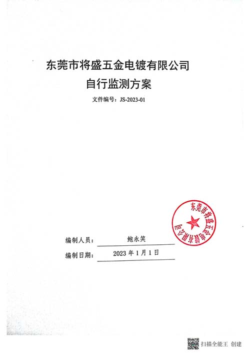 東莞市將盛五金電鍍有限公司2023年自行監測方案