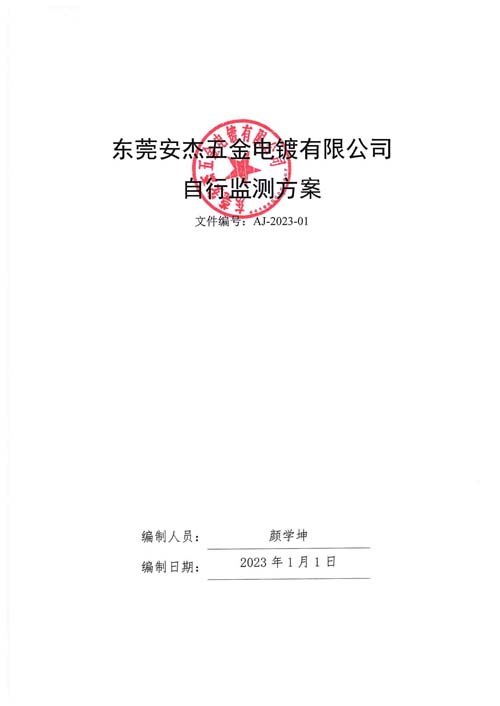 東莞安杰五金電鍍有限公司2023年自行監(jiān)測方案