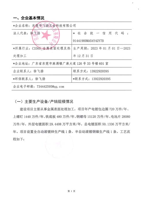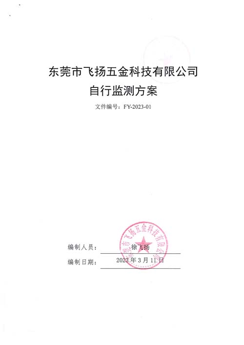 東莞市協騰五金制品有限公司2023年自行監測方案