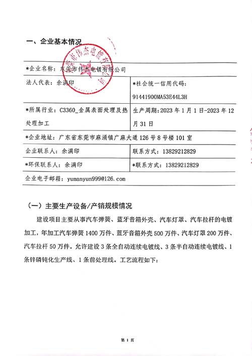 東莞市偉杰電鍍有限公司2023年自行監測方案