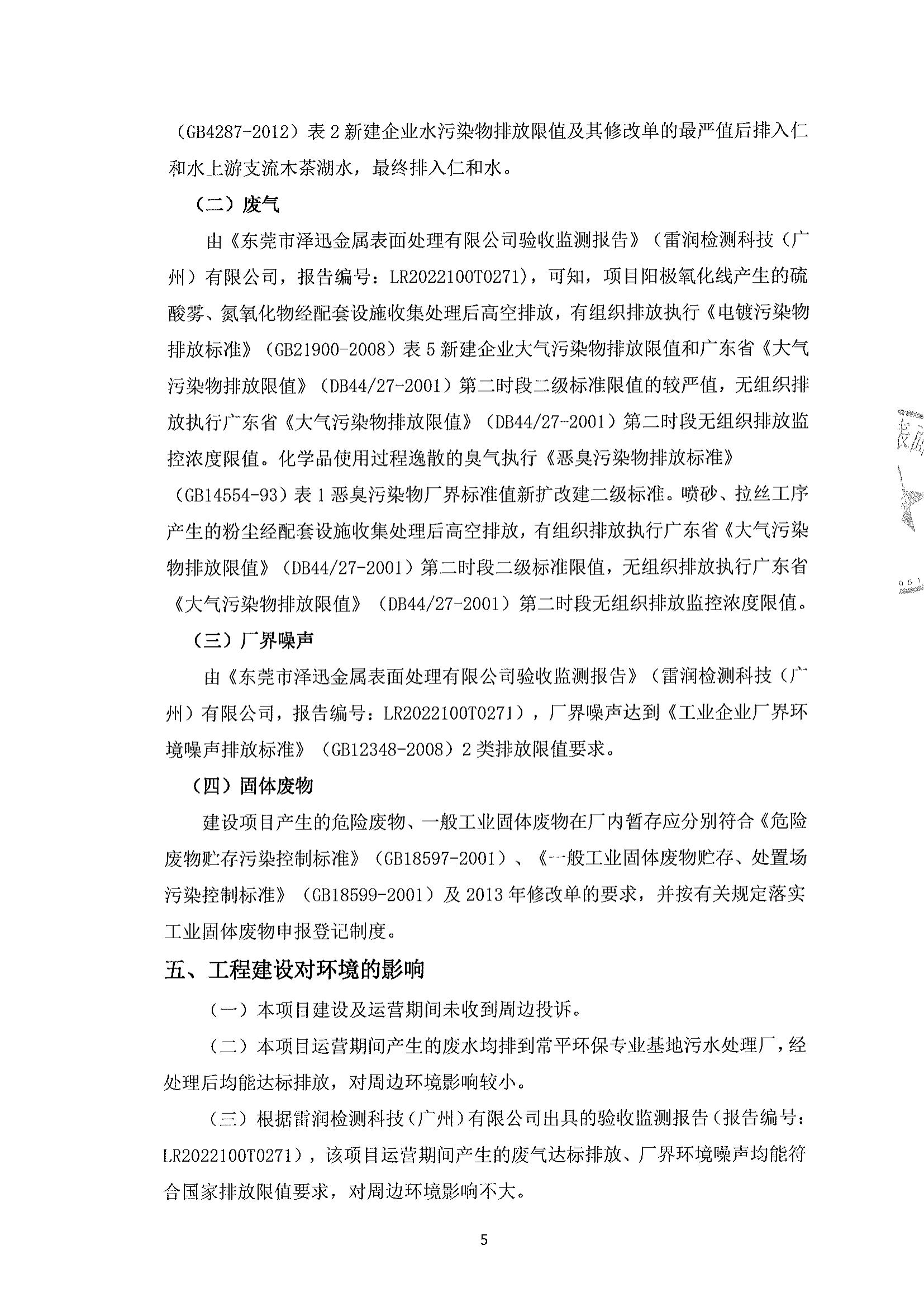 東莞市澤迅金屬表面處理有限公司建設(shè)項(xiàng)目竣工環(huán)境保護(hù)驗(yàn)收意見(jiàn)