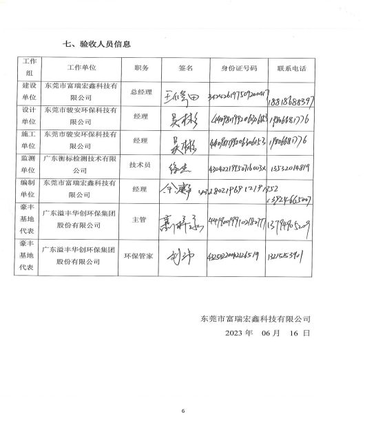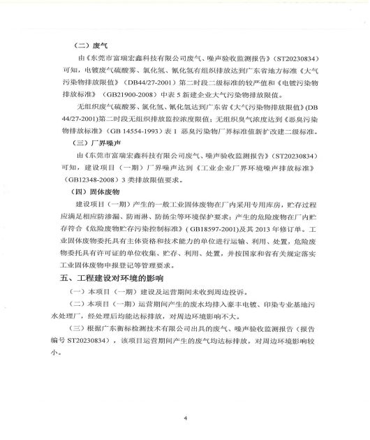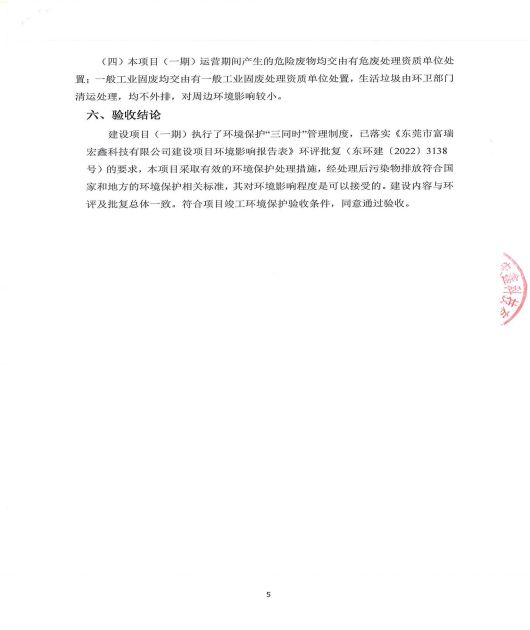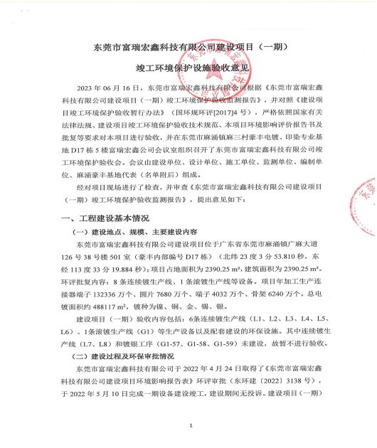 東莞市富瑞宏鑫科技有限公司(一期)驗(yàn)收意見