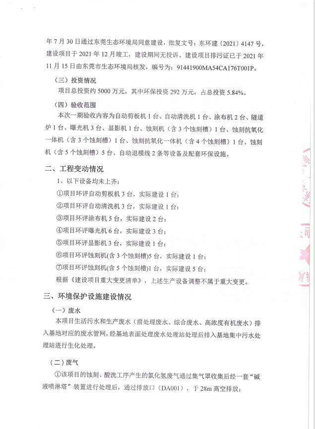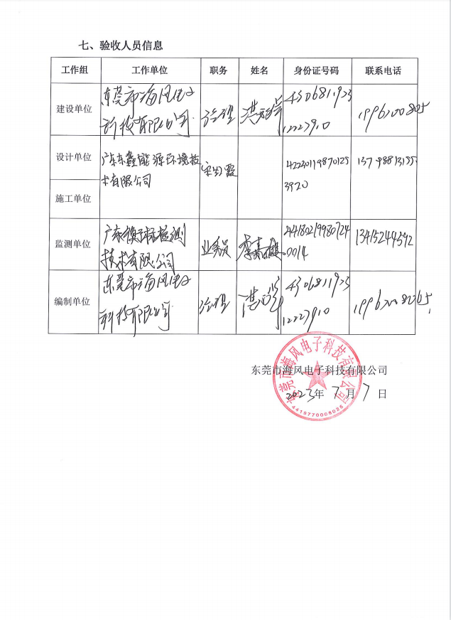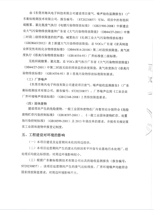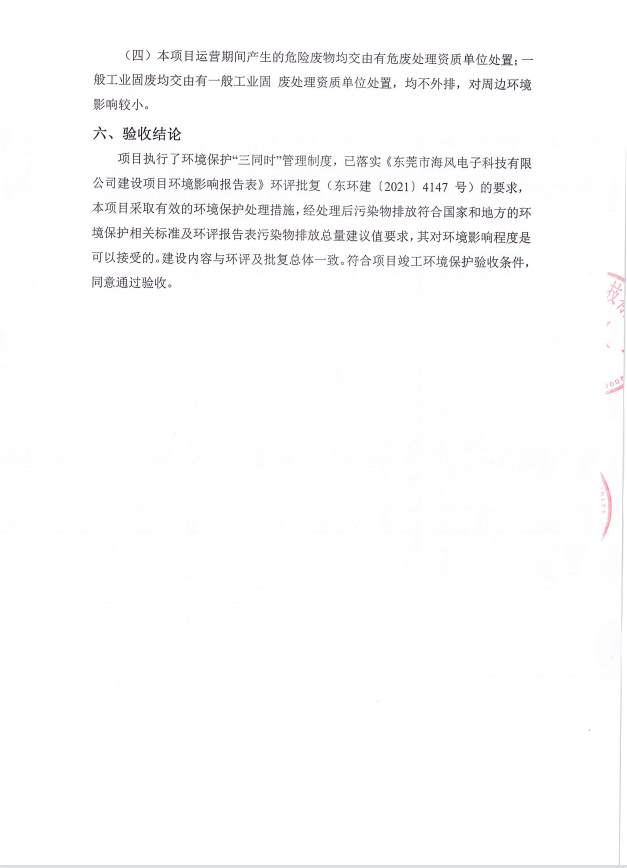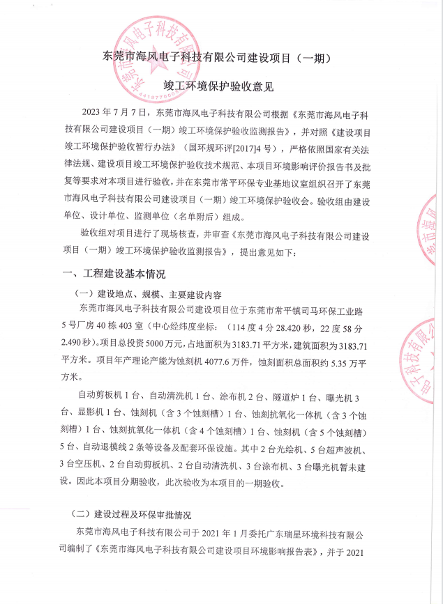 東莞市海風電子科技有限公司(一期)驗收意見