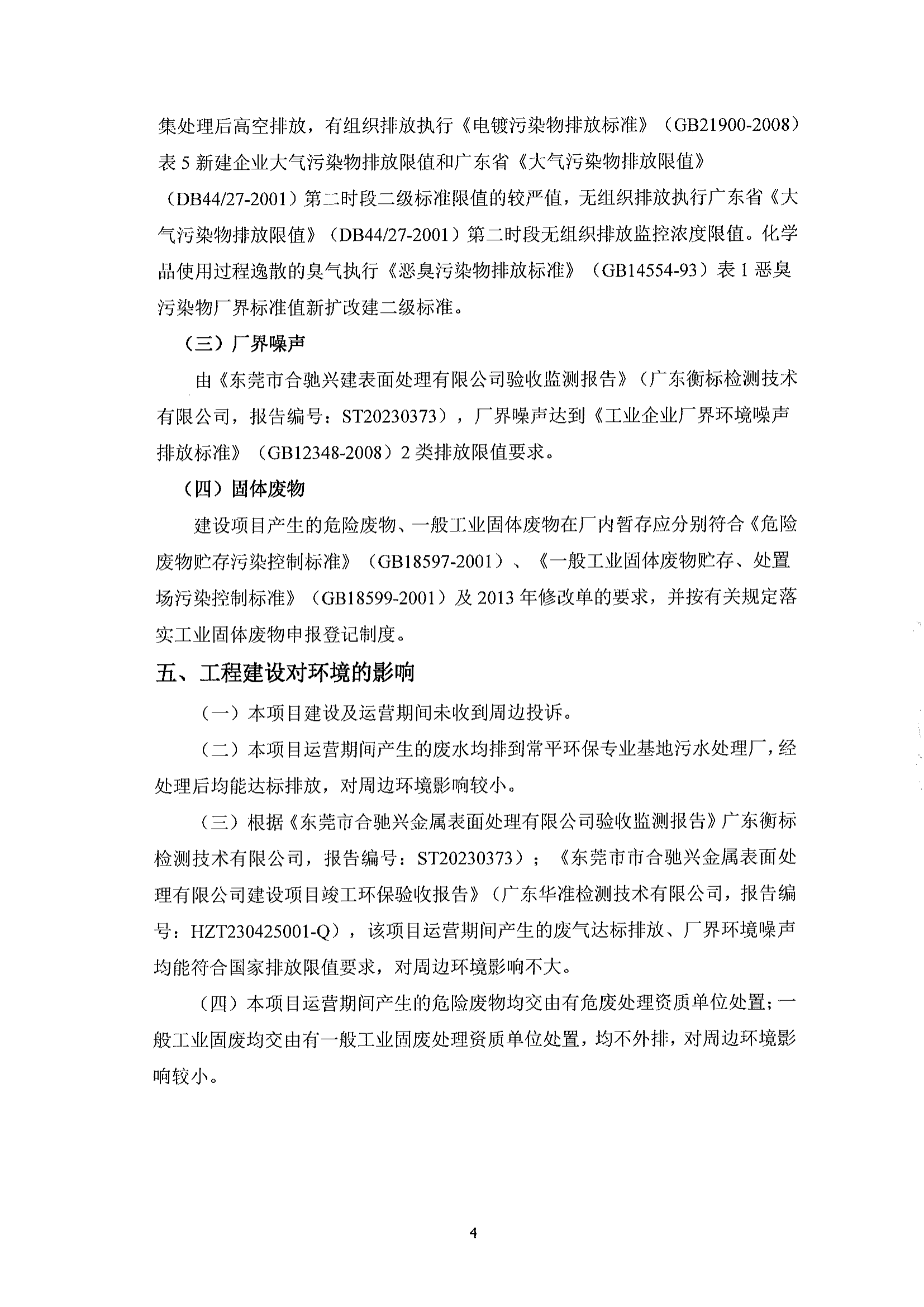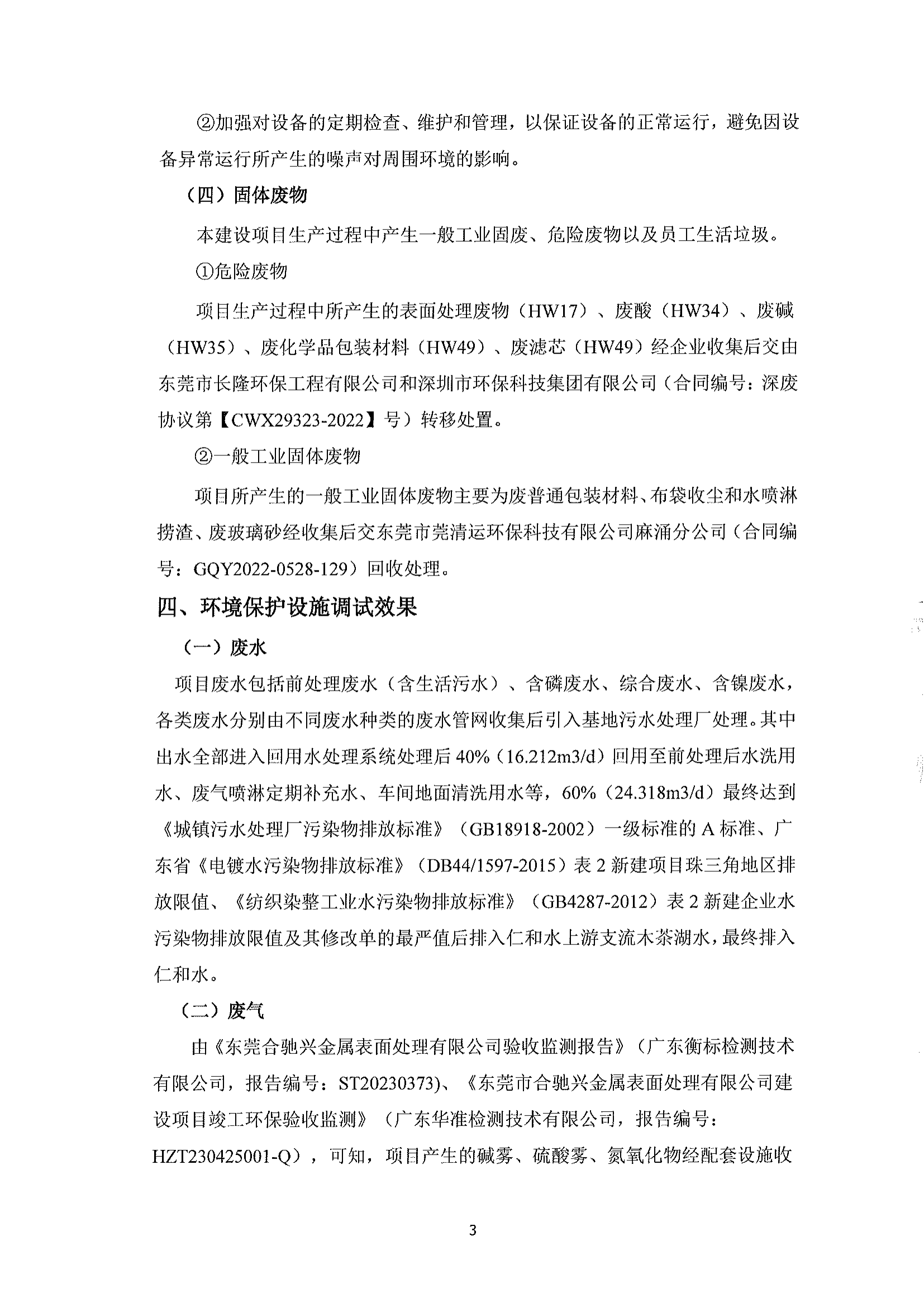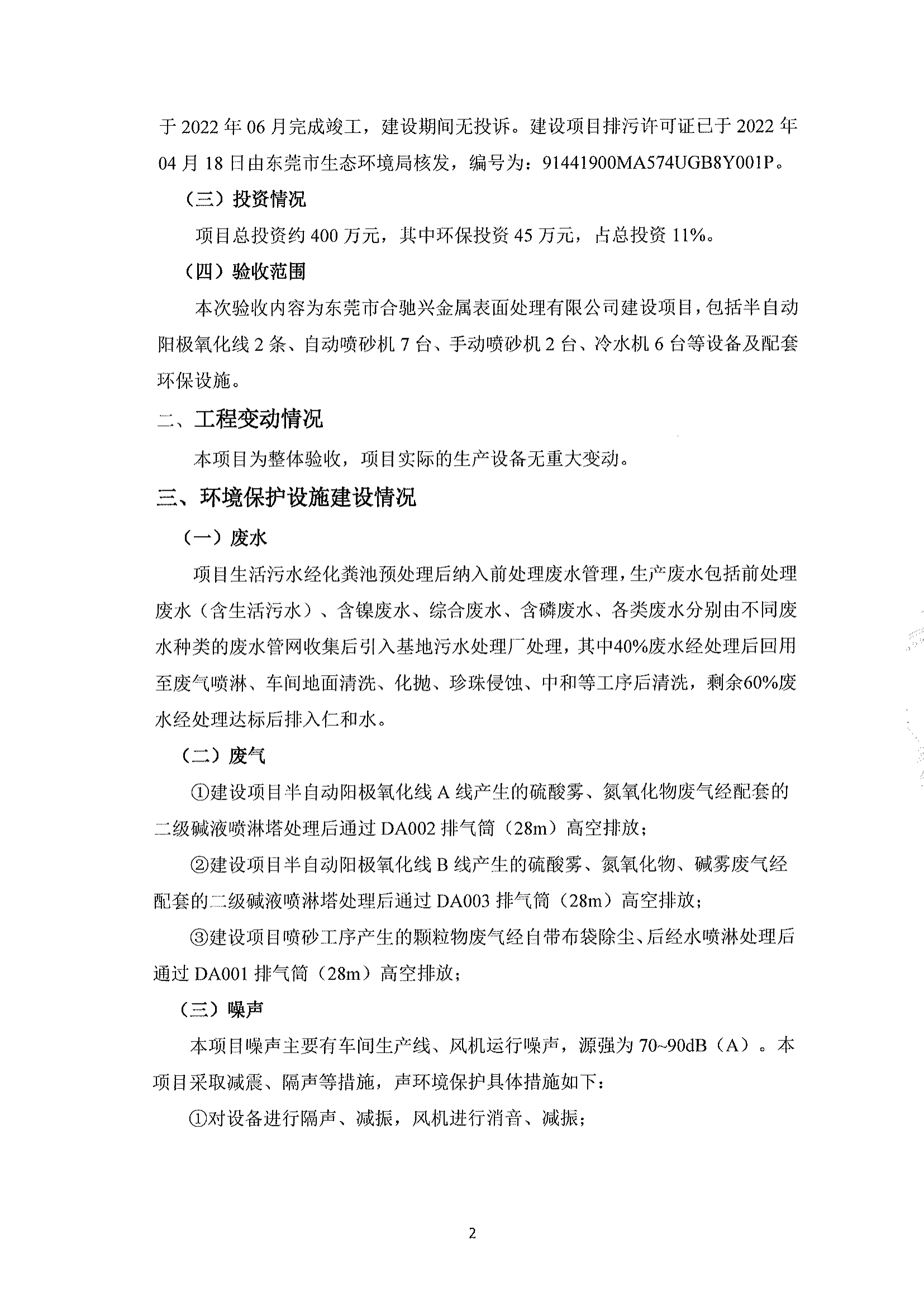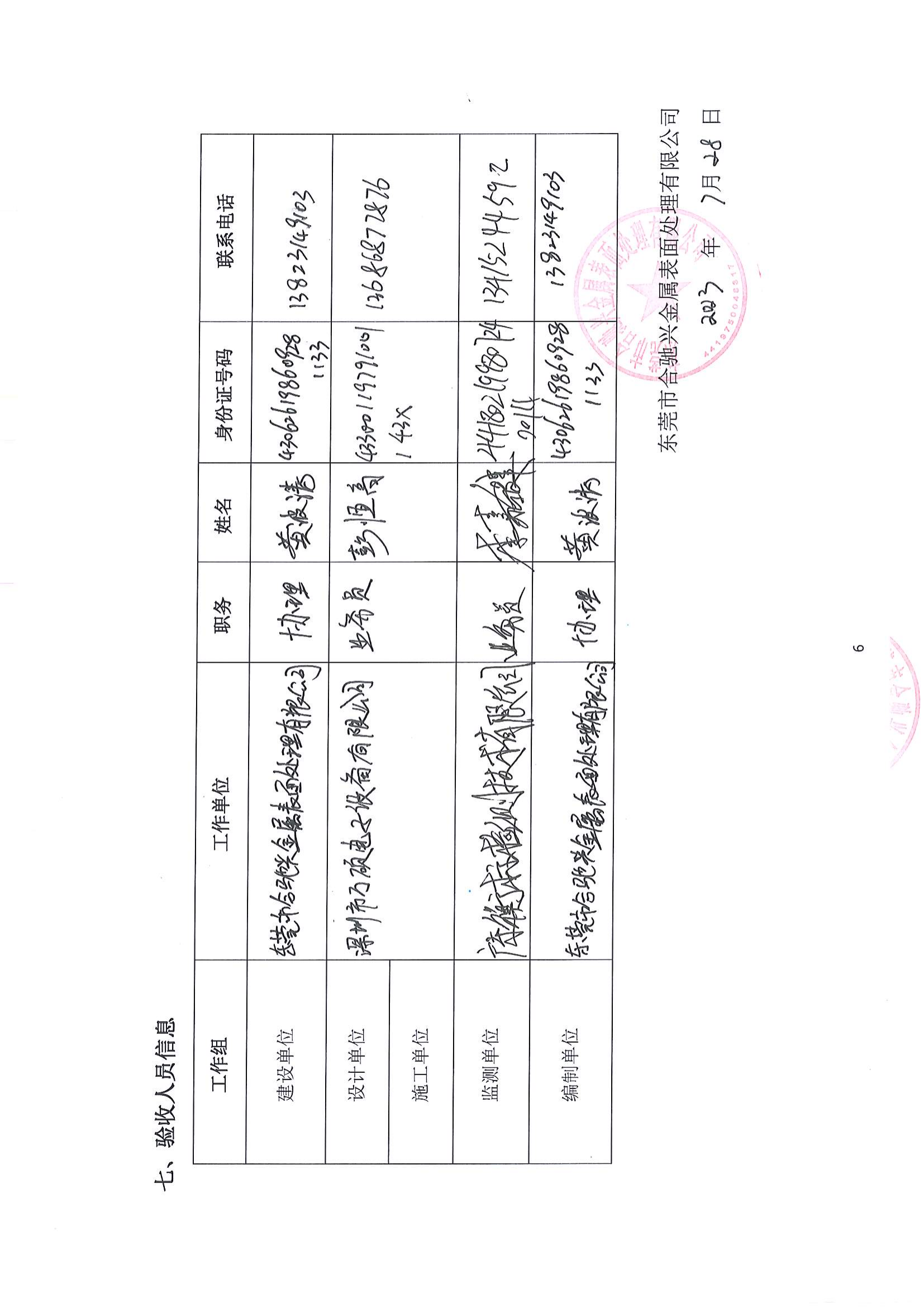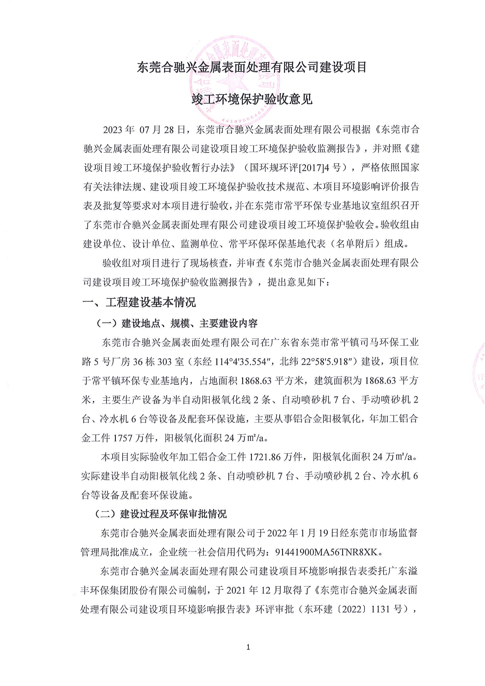 東莞市合馳興金屬表面處理有限公司驗收意見