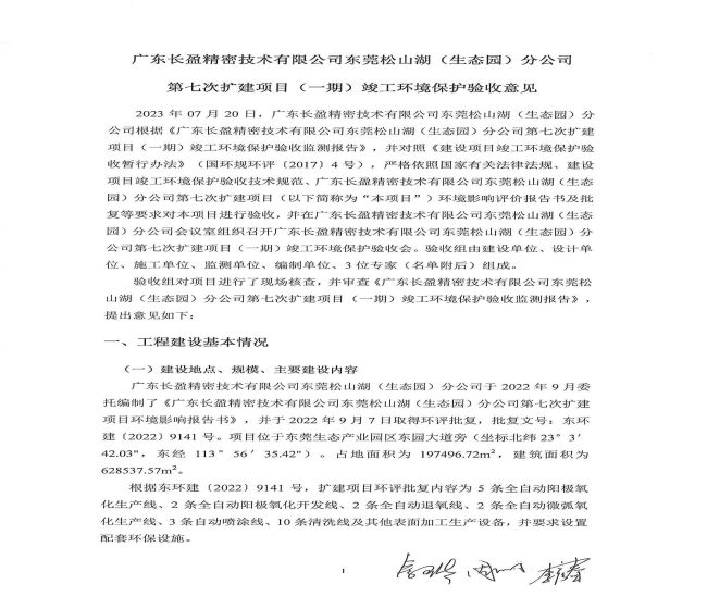 廣東長(zhǎng)盈東莞松山湖(生態(tài)園)分公司第七次擴(kuò)建項(xiàng)