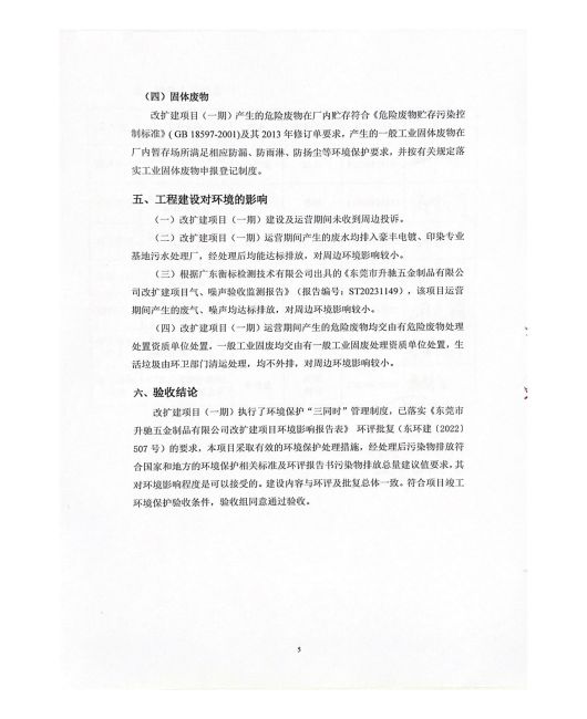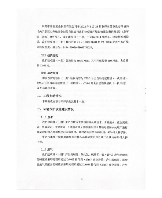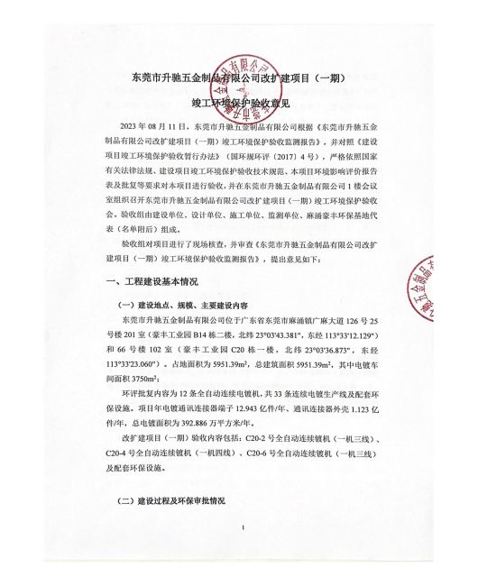 東莞市升馳五金制品有限公司改擴建(一期)驗