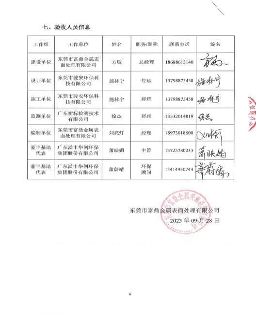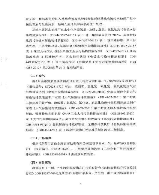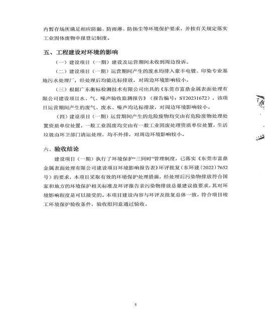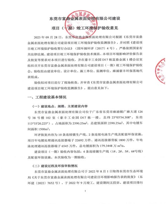 東莞市富鼎金屬表面處理有限公司一期驗收意見