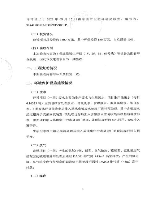 東莞市冠華金屬表面處理有限公司一期驗收意見
