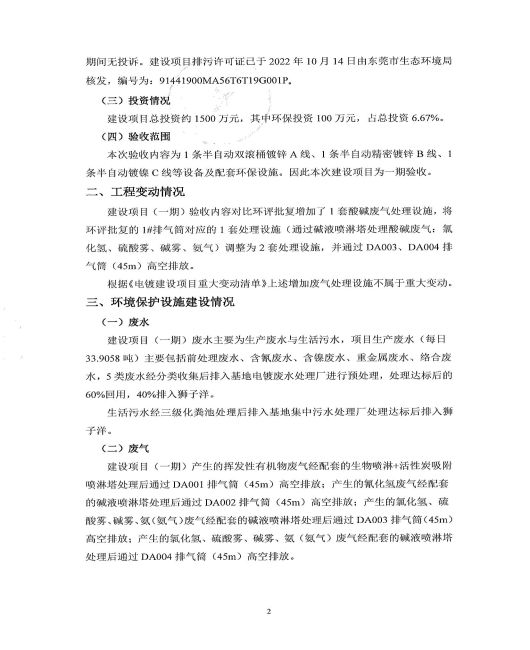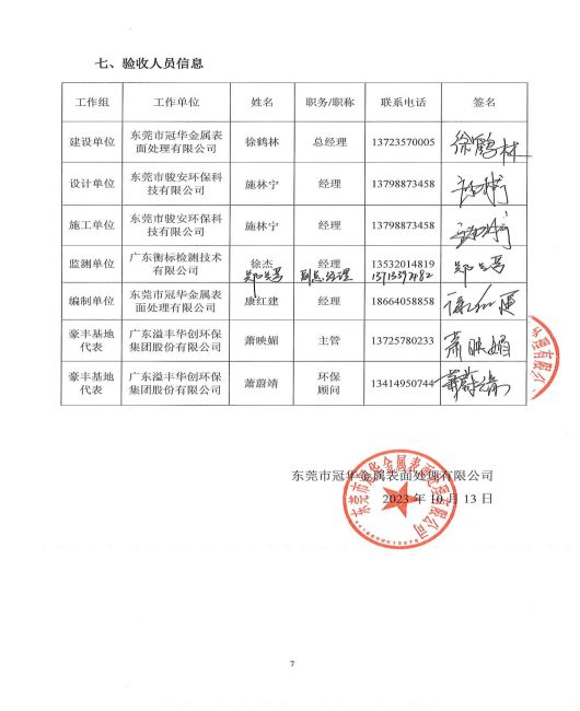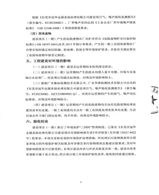東莞市冠華金屬表面處理有限公司一期驗(yàn)收意見(jiàn)