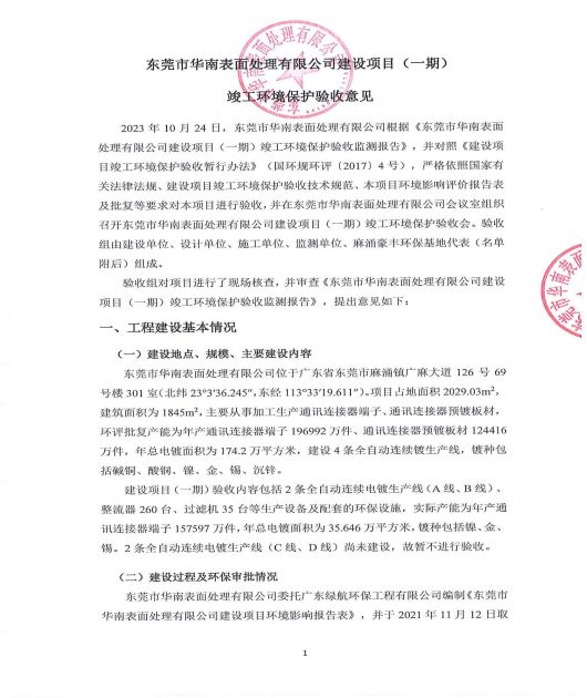東莞市福鍍科技有限公司建設項目(一期)竣工