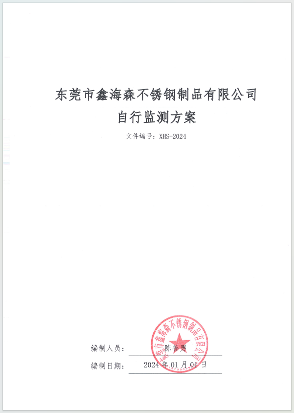 關于東莞市鑫海森不銹鋼制品有限公司自行監測