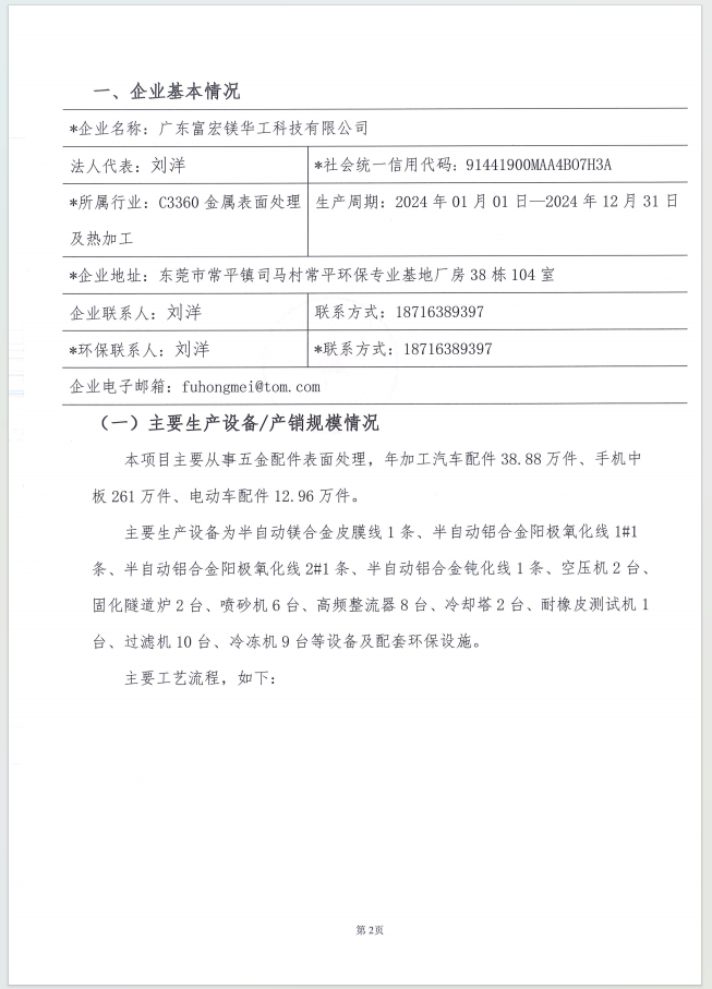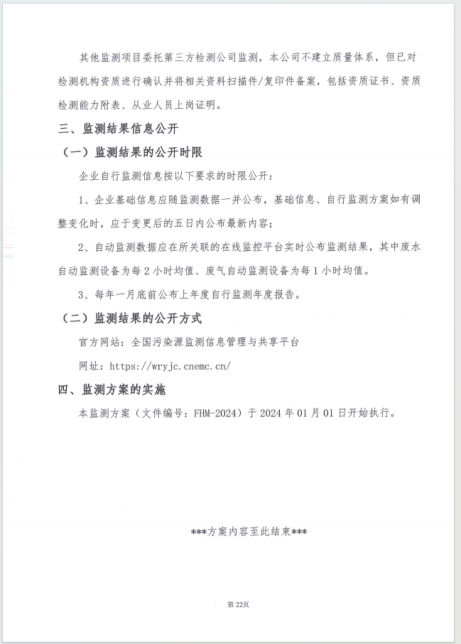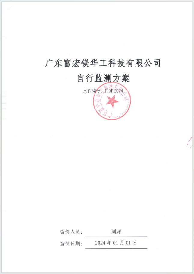 關于廣東富宏鎂華工科技有限公司自行監測方案