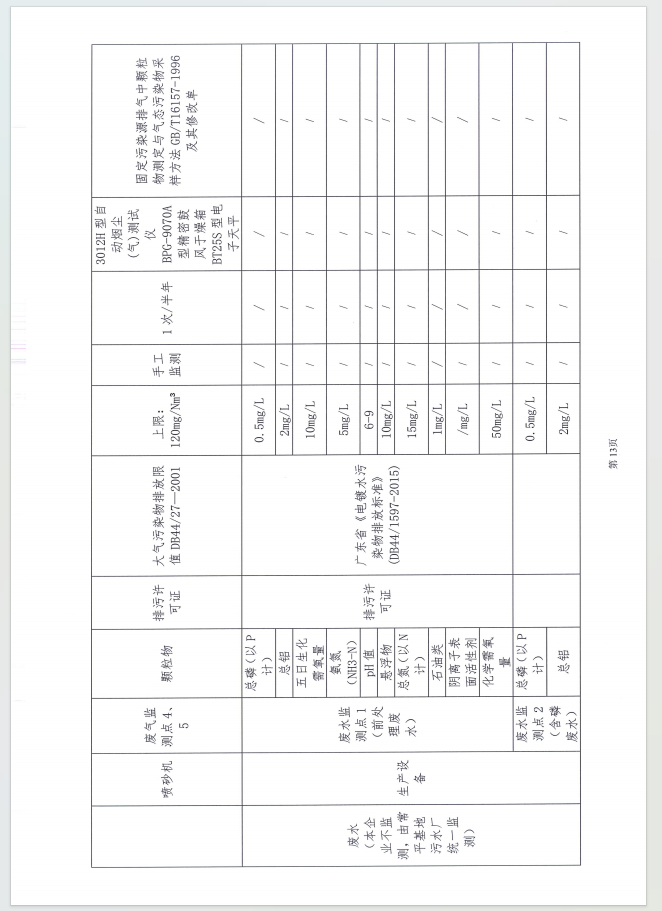 關于東莞市多鎂精密五金有限公司自行監測方案