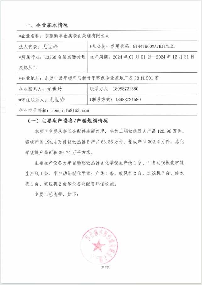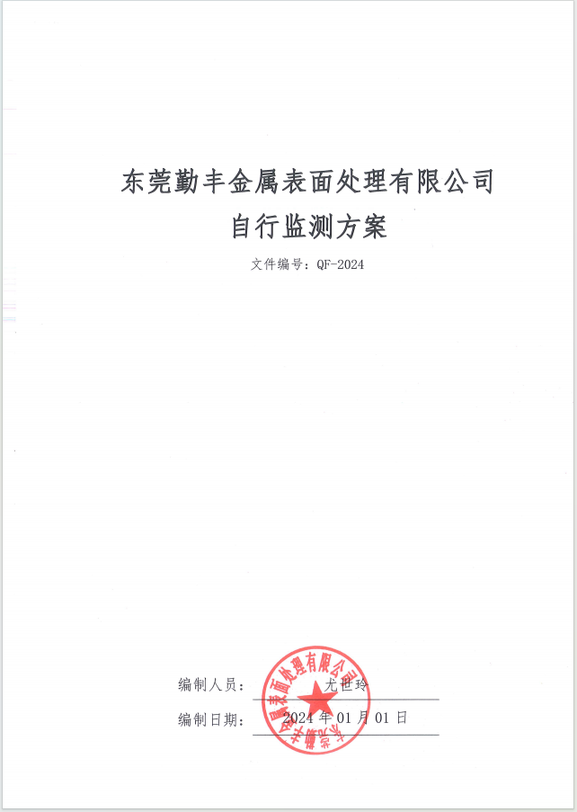 關(guān)于東莞勤豐金屬表面處理有限公司自行監(jiān)測方