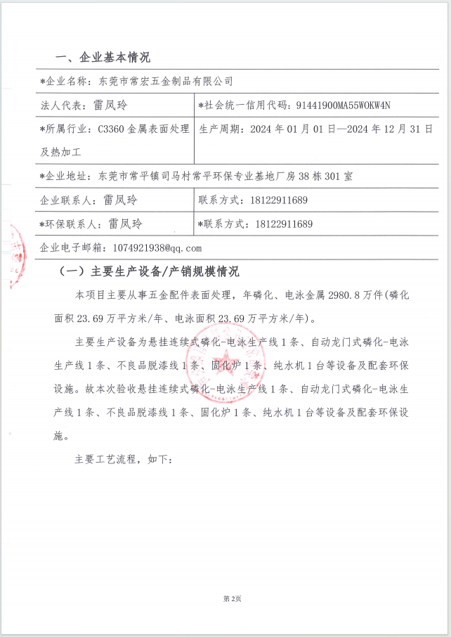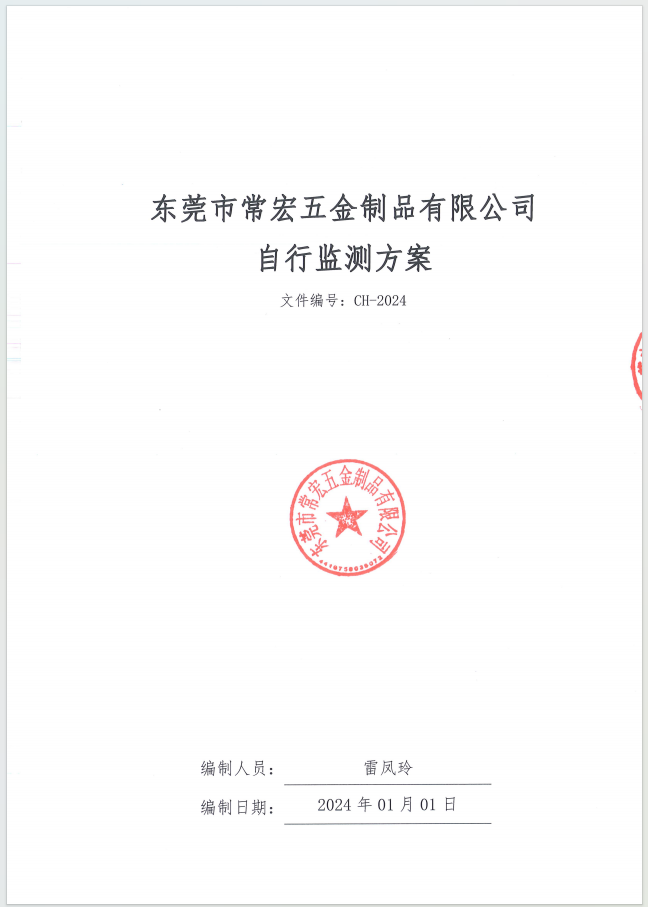 關(guān)于東莞市常宏五金制品有限公司自行監(jiān)測方案