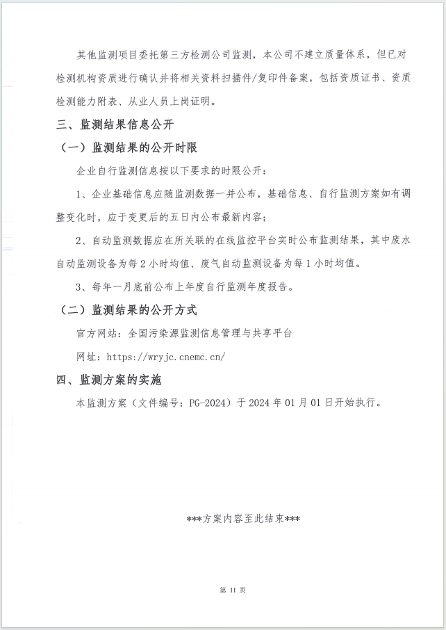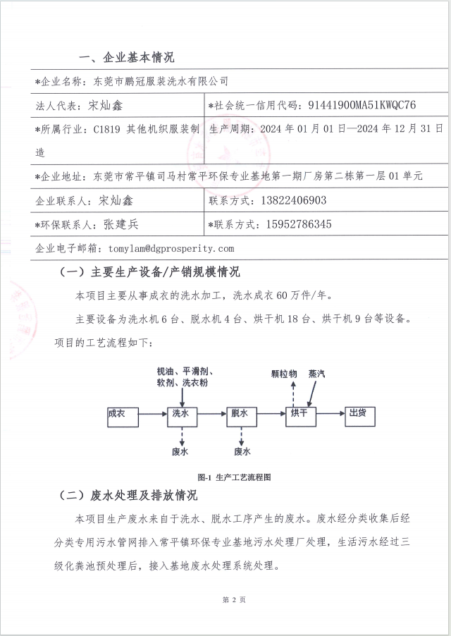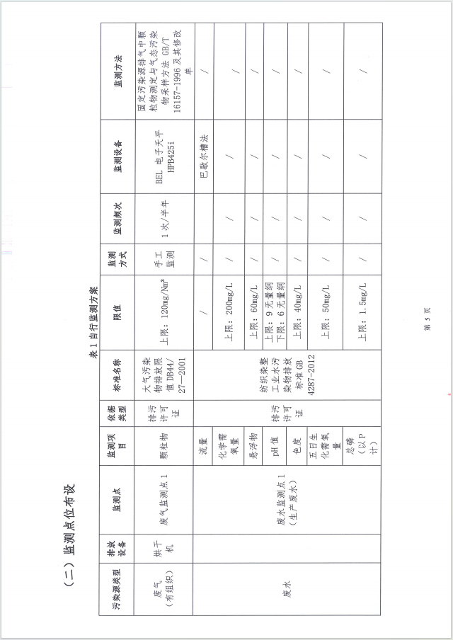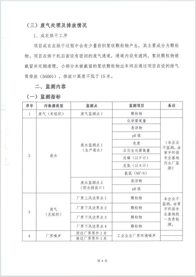 關于東莞市鵬冠服裝洗水有限公司自行監測方案