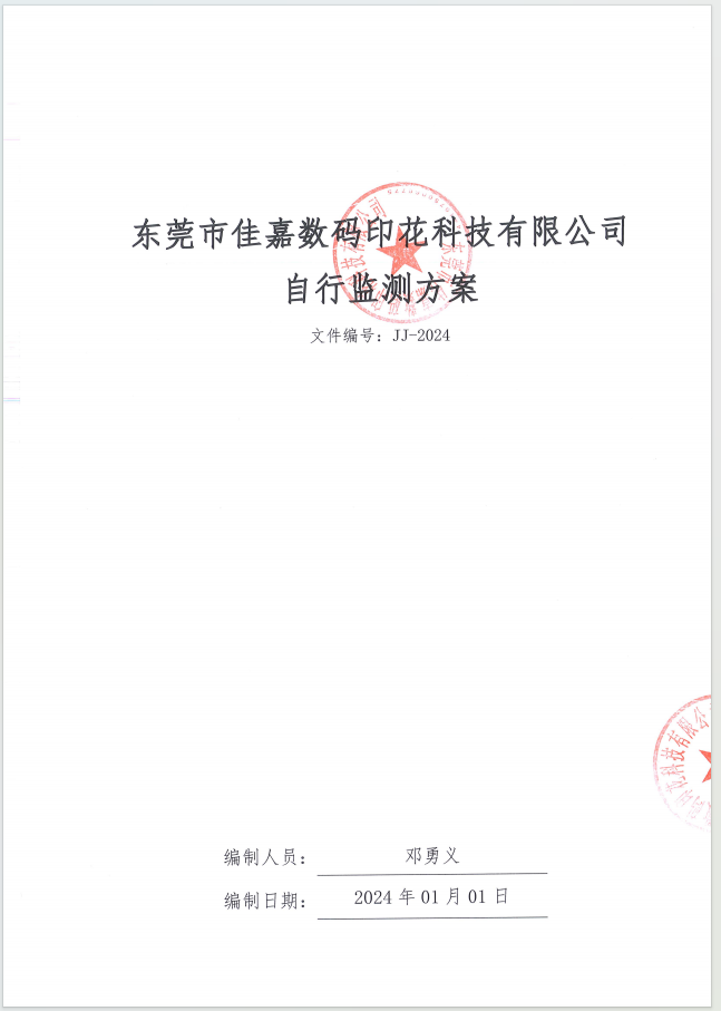 關于東莞市佳嘉數碼印花科技有限公司自行監測