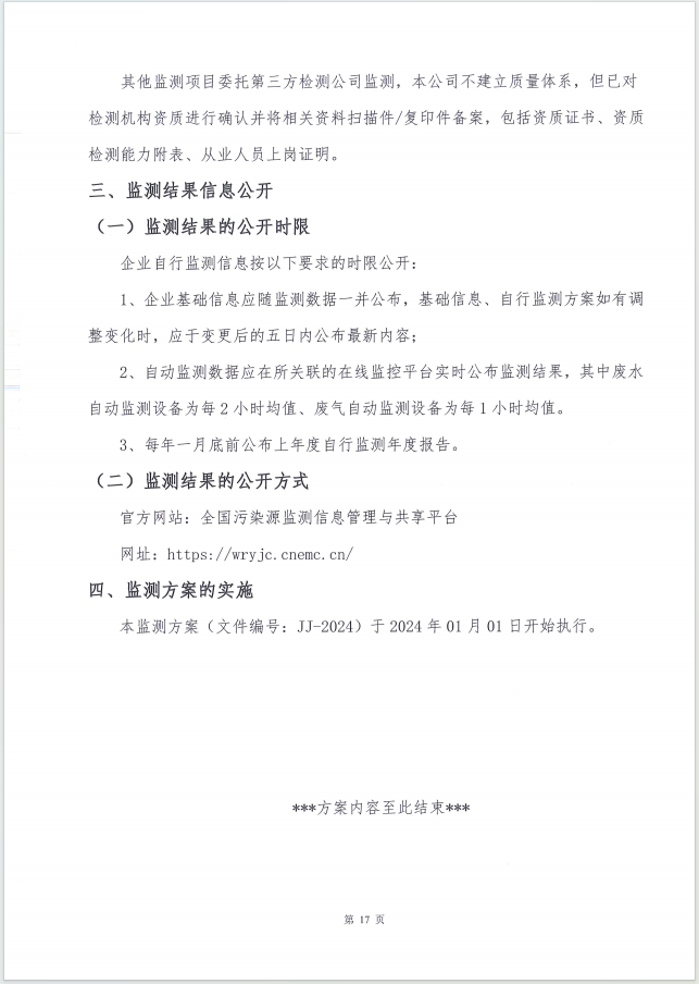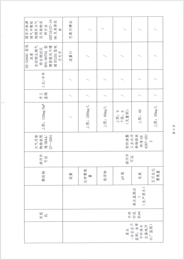 關于東莞市鵬冠服裝洗水有限公司自行監測方案