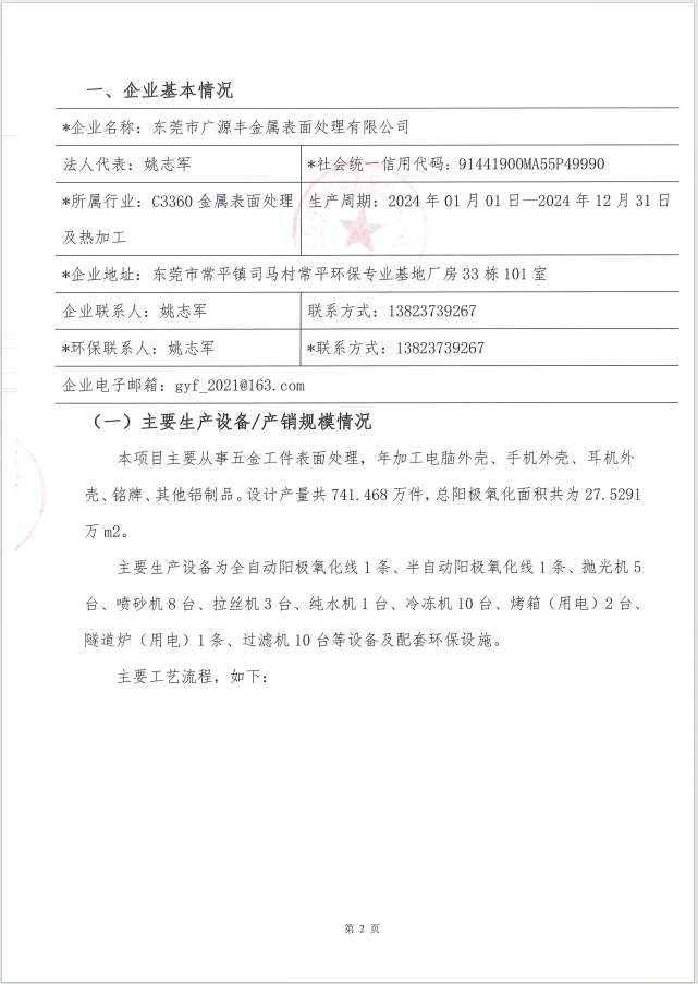 關于東莞市廣源豐金屬表面處理有限公司自行監