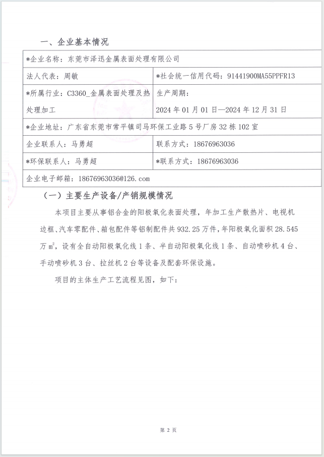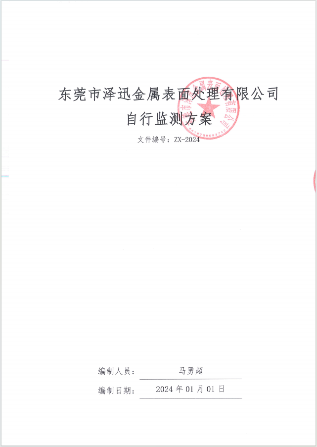 關于東莞市澤迅金屬表面處理有限公司自行監測