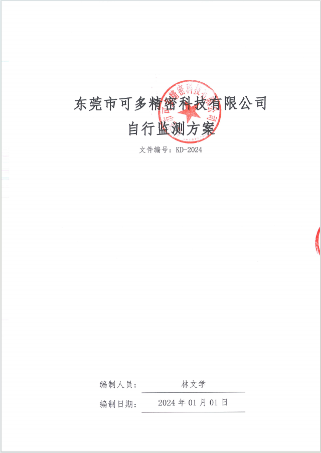 關于東莞市可多精密科技有限公司自行監測方案