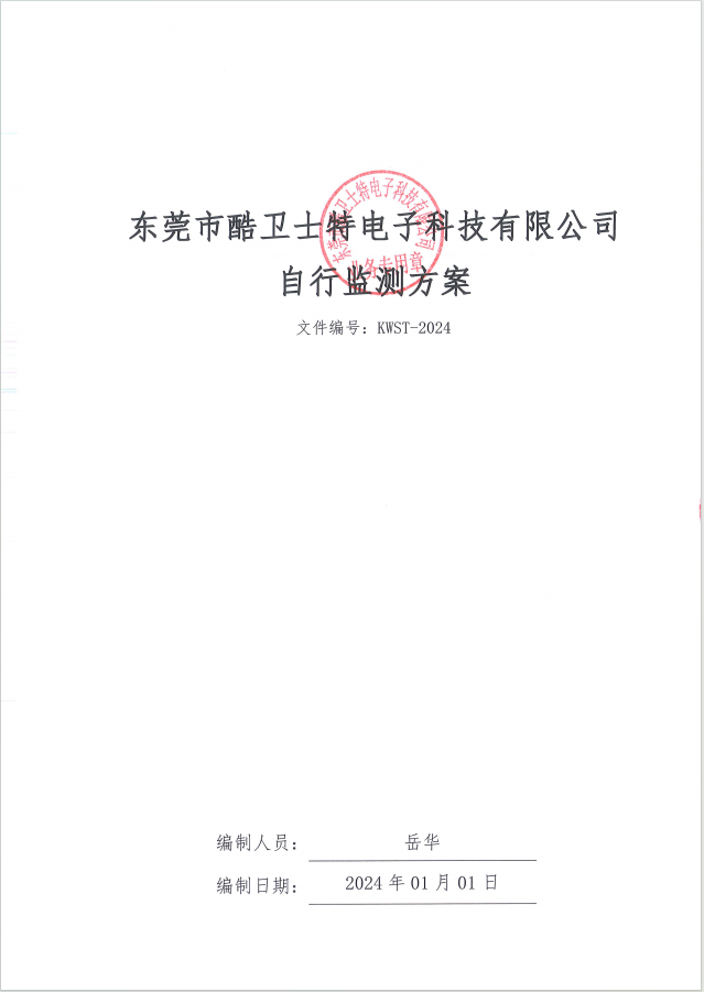 關(guān)于東莞市酷衛(wèi)士特電子科技有限公司自行監(jiān)測