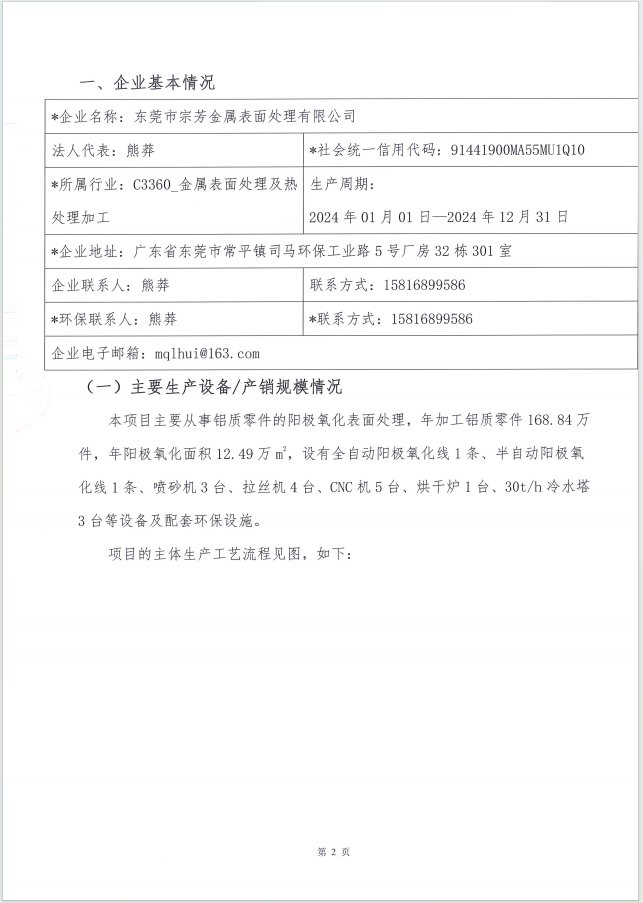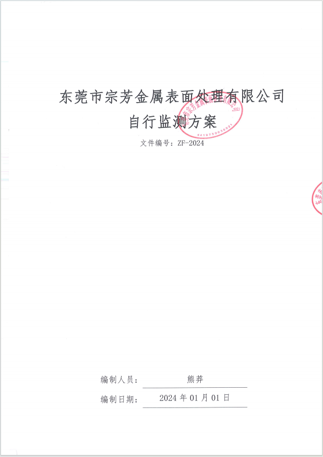 關于東莞市宗芳金屬表面處理有限公司自行監測