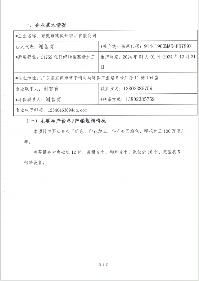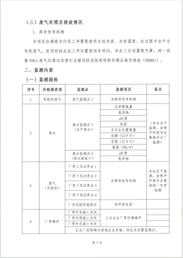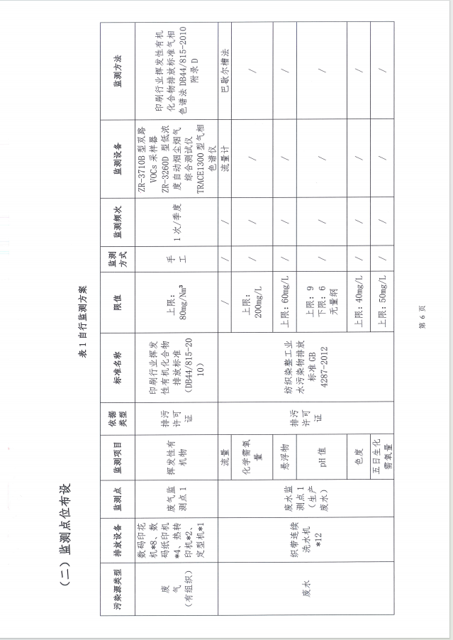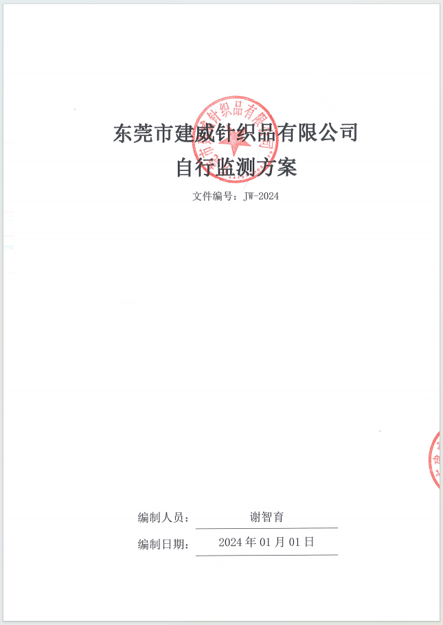 關(guān)于東莞市建威針織品有限公司自行監(jiān)測(cè)方案