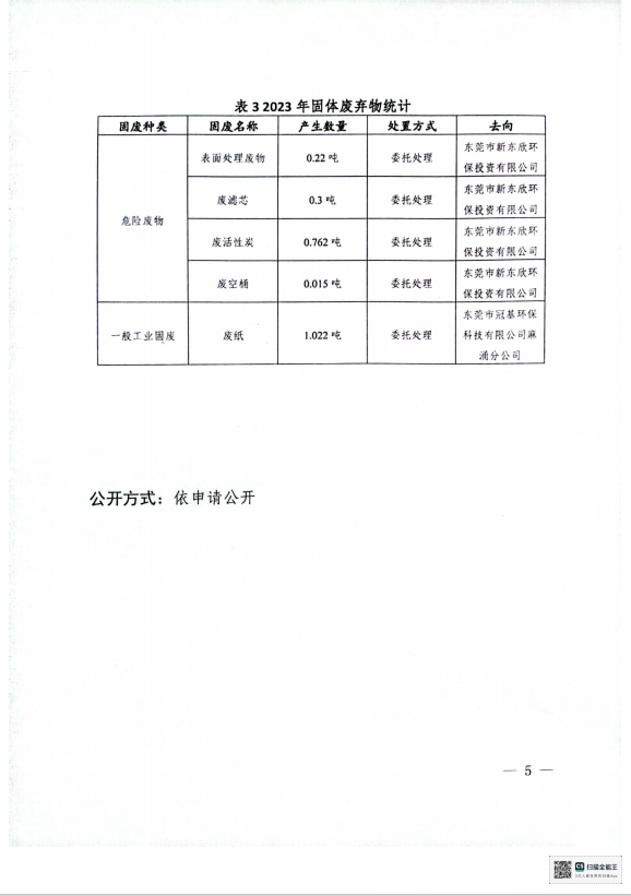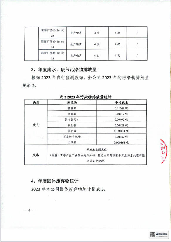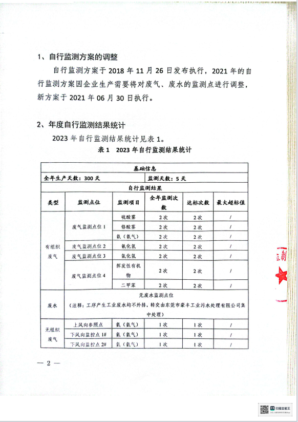 東莞市玄安五金加工有限公司2023年自行監測年報