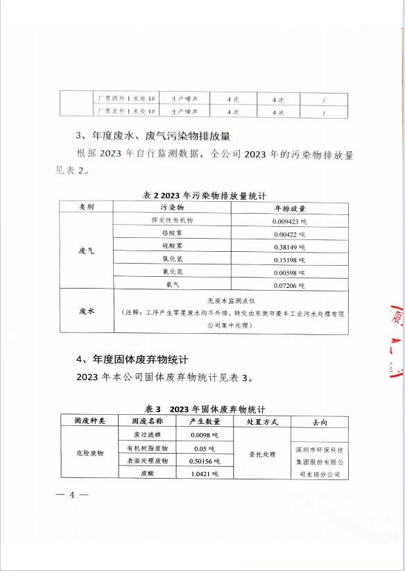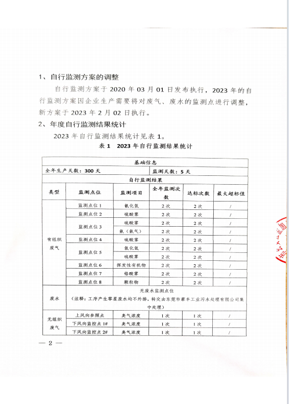 東莞市玄安五金加工有限公司2023年自行監測年報