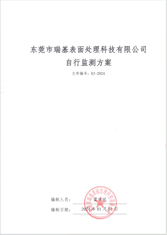 關于東莞市瑞基表面處理科技有限公司自行監測