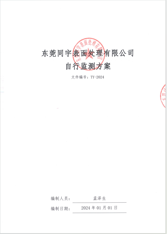 關于東莞市鑫堯表面處理科技有限公司自行監測