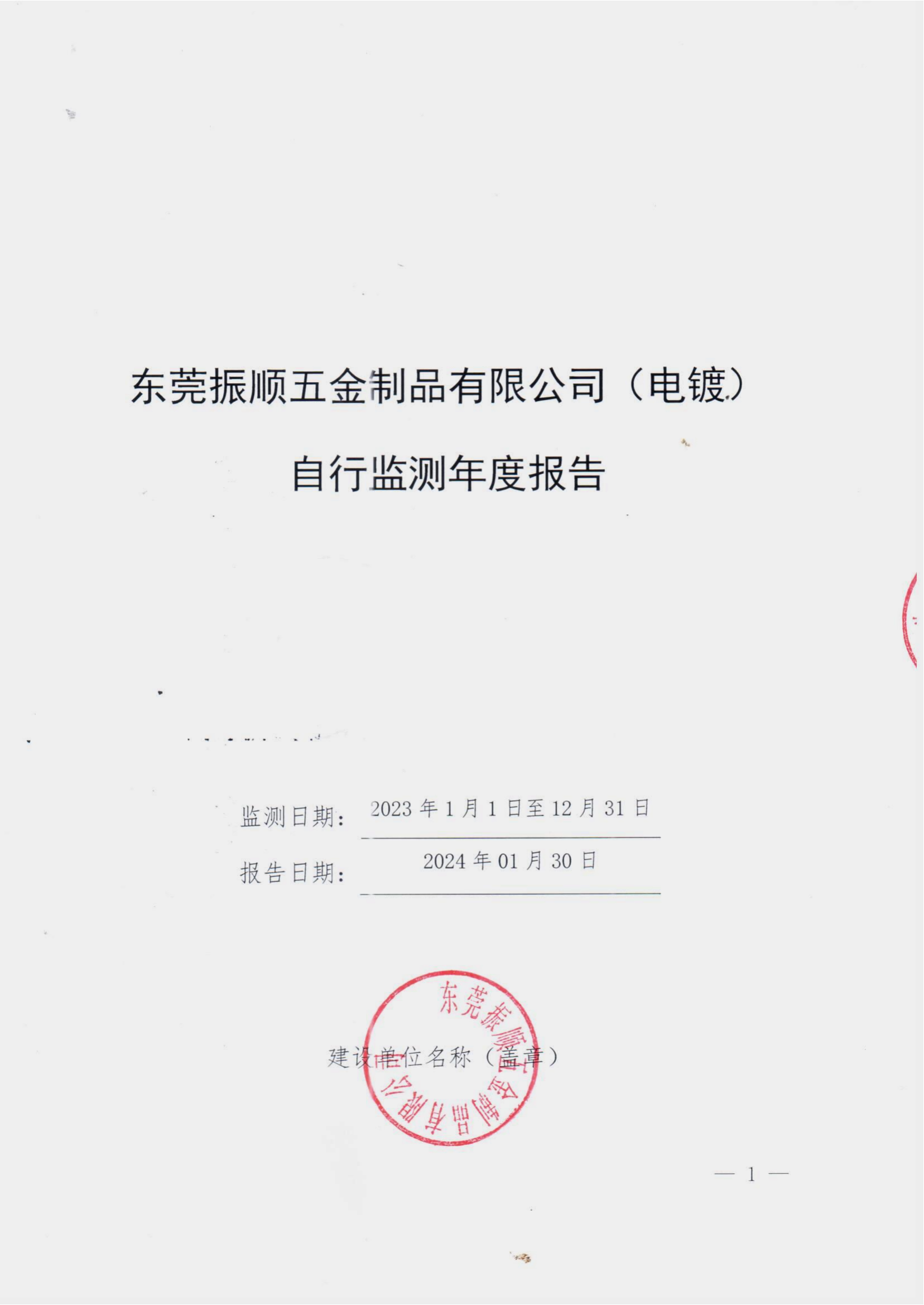 東莞振順五金制品有限公司(電鍍)2023年自行監(jiān)