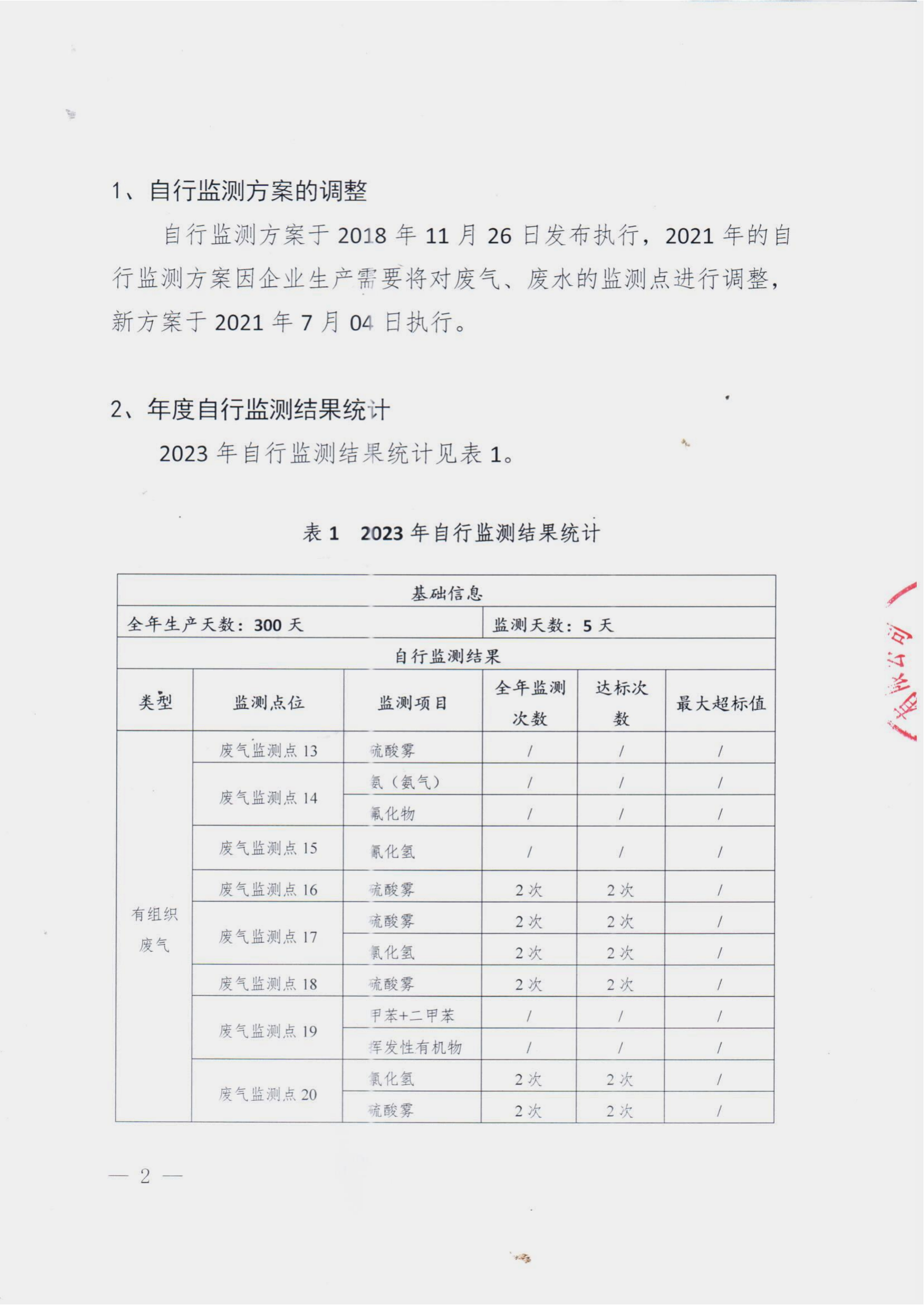 東莞劍舟科技有限公司2023年自行監(jiān)測年報