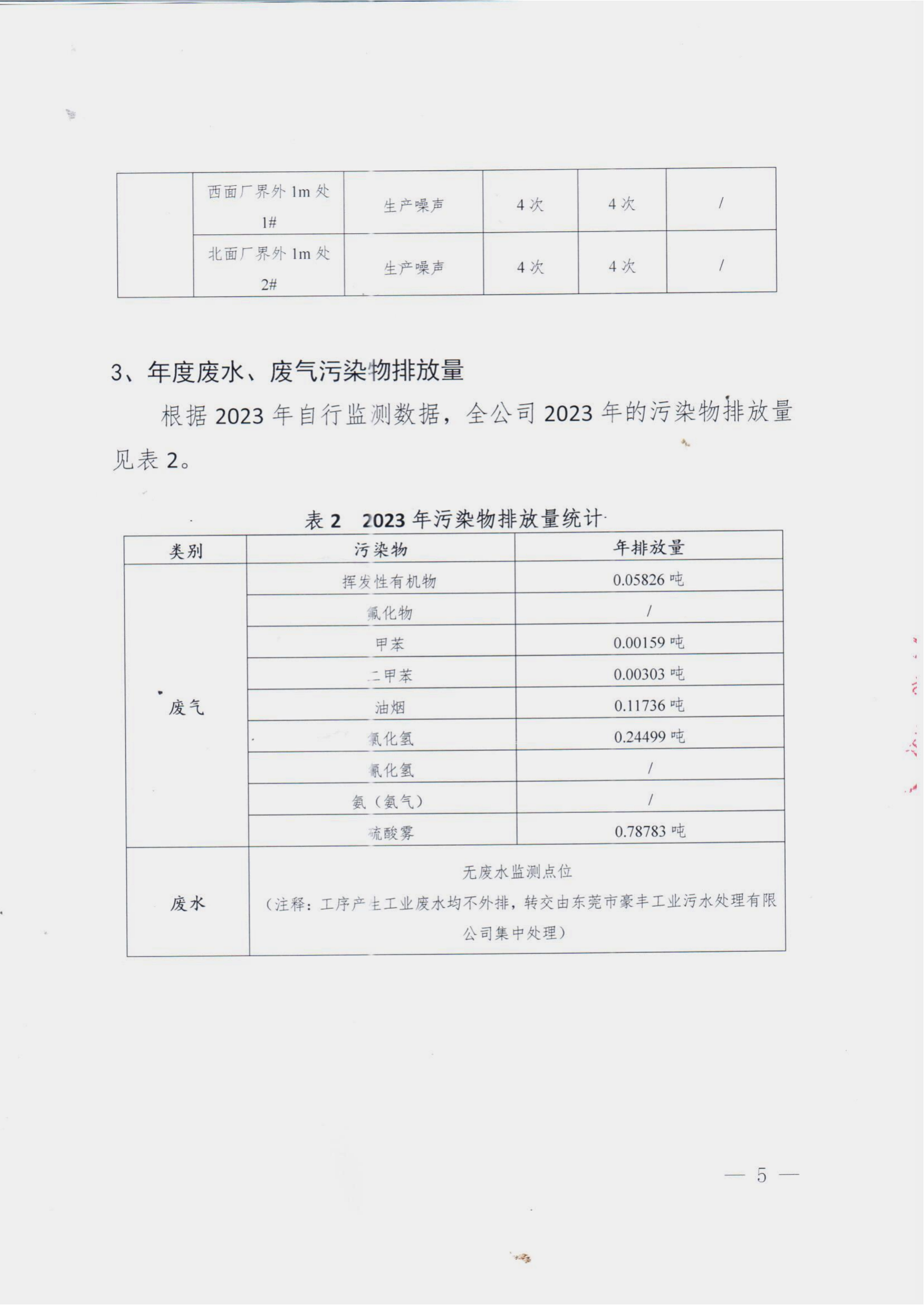 東莞市升馳五金制品有限公司2023自行監(jiān)測年度報
