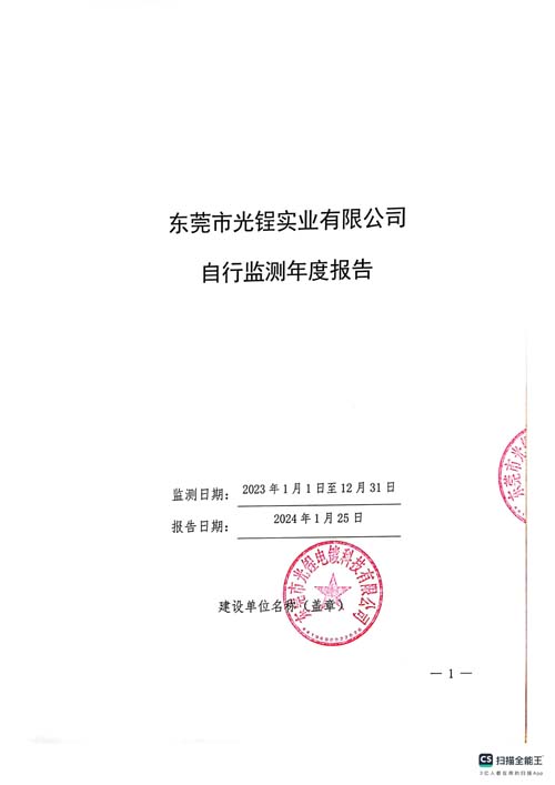 東莞市光锃實業有限公司2023自行監測年報
